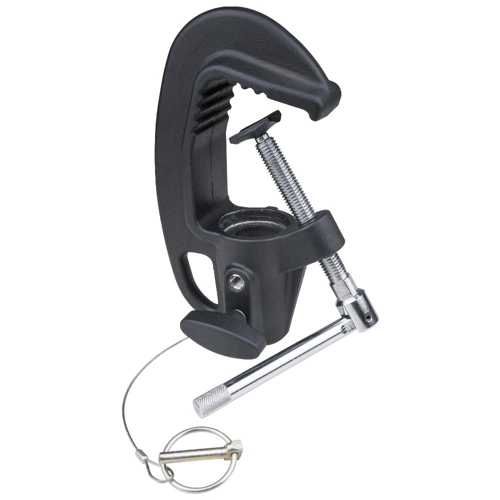 Зажим KUPO KCP-100B T.V. CLAMP BLACK - это прочный литой C-образный зажим, предназначенный для надежного подвешивания осветительных приборов в телестудиях и театрах. Зажим оснащен приемным гнездом Junior 1-1/8" (28мм) для надежного крепления осветительных приборов. Зажим устанавливается на трубы диаметром от 22 до 54 мм и имеет грузоподъемность до 250 кг. Зубцы на крюке зажима препятствуют смещению крепежа. Поджимной винт оснащен рычажным шарнирным воротком для удобного захвата с требуемым усилием. Для дополнительной безопасности на зажиме имеется предохранительный стержень с кольцом на тросике, который устанавливается в штифт прибора и защищает его от случайного выскальзывания. Зажим KCP-100B T.V. Clamp - отличное решение для надежного и безопасного крепления осветительных приборов в профессиональных условиях эксплуатации.
