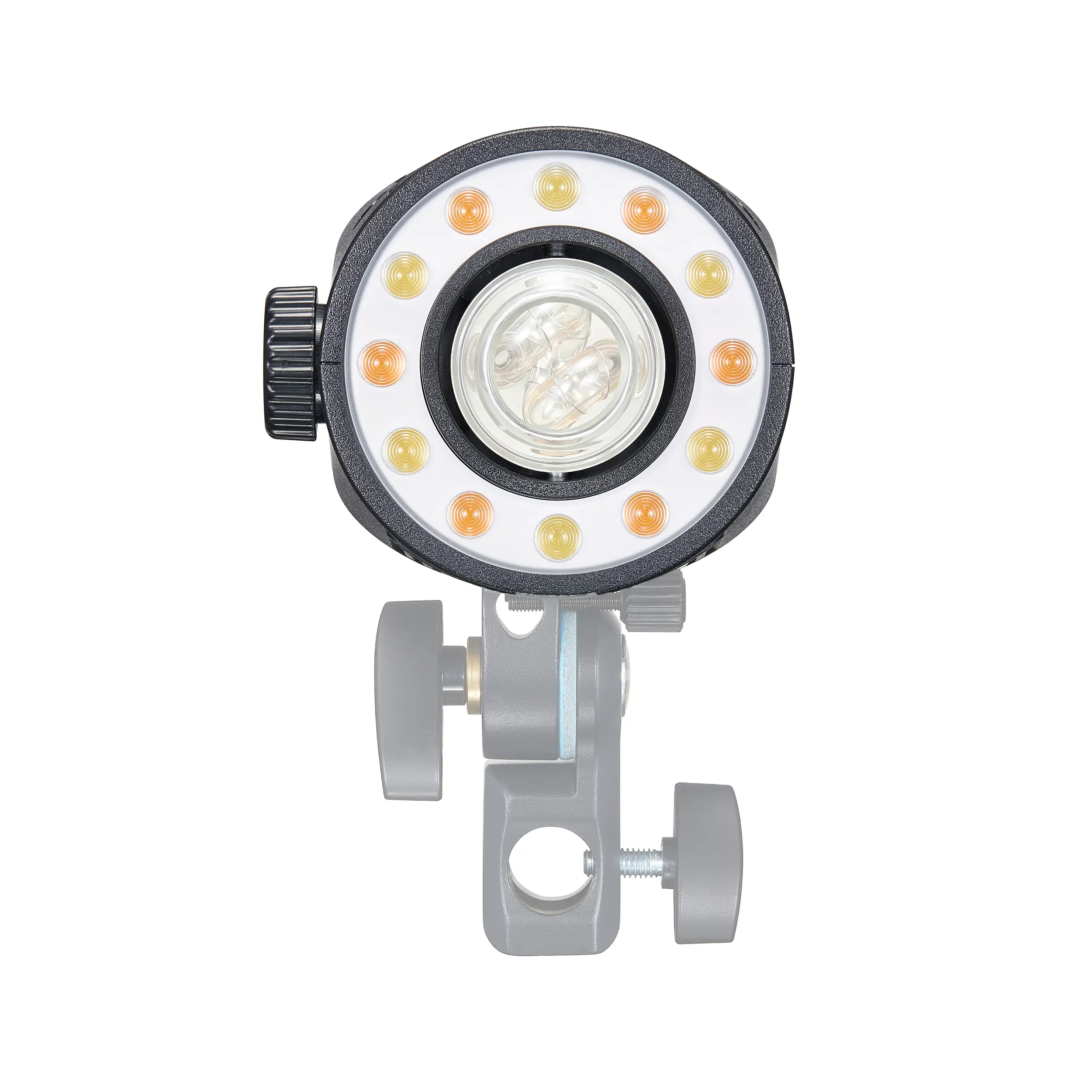 Биколорное светодиодное кольцо позволяет менять цветовую температуру в диапазоне 2800К-6000К для создания более естественного освещения или имитации различных эффектов. Его можно также использовать как источник постоянного света или для проверки схемы освещения. Моделирующая лампа обеспечивает освещенность до 1400 люкс на 1 м.