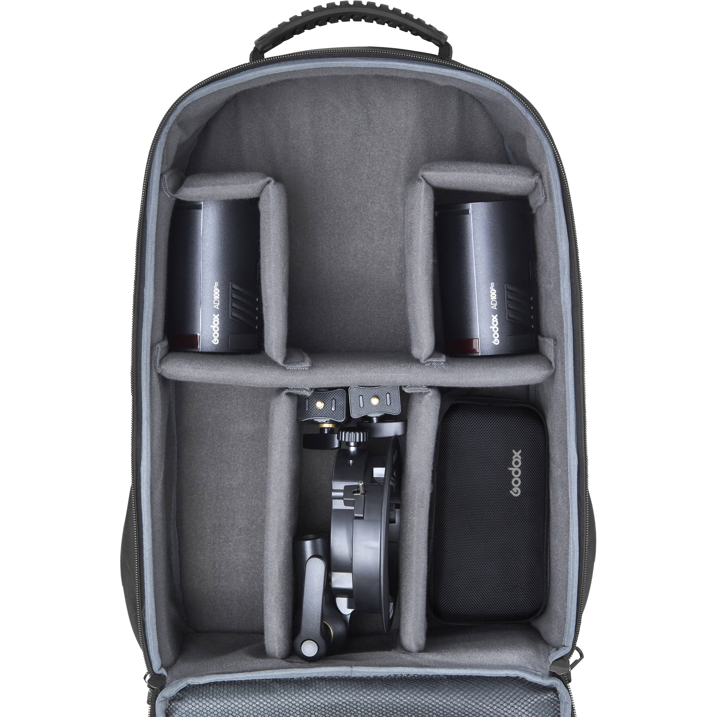 Godox AD100Pro Three KIT – компактный и легкий комплект для фотографа, чтобы быстро организовать освещение студийного качества на выездной съемке. В расширенный комплект входят три аккумуляторные вспышки Godox AD100Pro, три адаптера AD-E2 для установки вспышек на стойку, просветный фотозонт UBL-085T, серебристый фотозонт UBL-085S, адаптер S2 (Bowens) и прочный рюкзак CB20, который вмещает в себя все оборудование. Комплект удобно хранить и просто взять с собой в путешествие.
