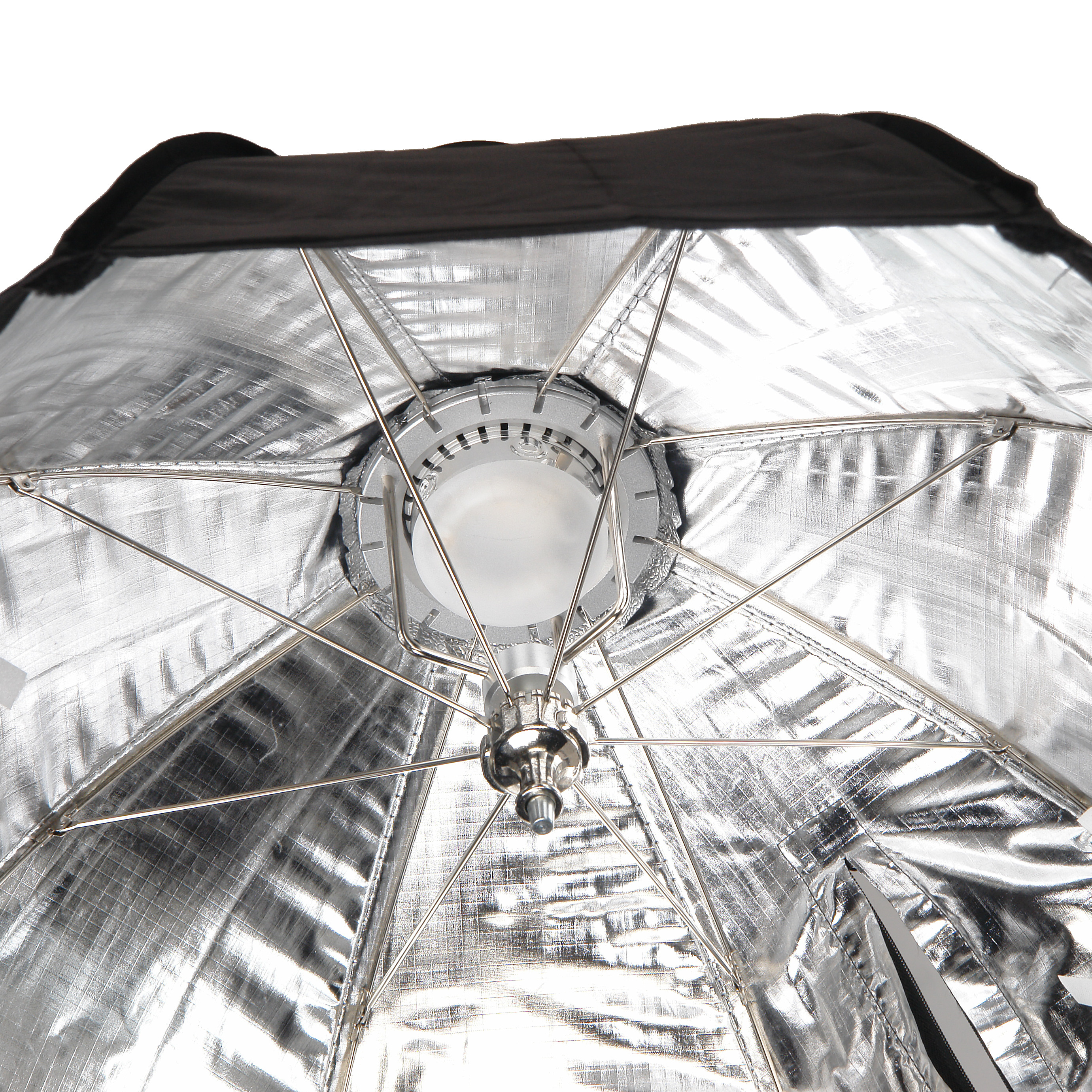 Октобокс предназначен для использования совместно со студийными вспышками AD300 и других источниках света с байонетом Godox, благодаря которому крепится напрямую к моноблоку.