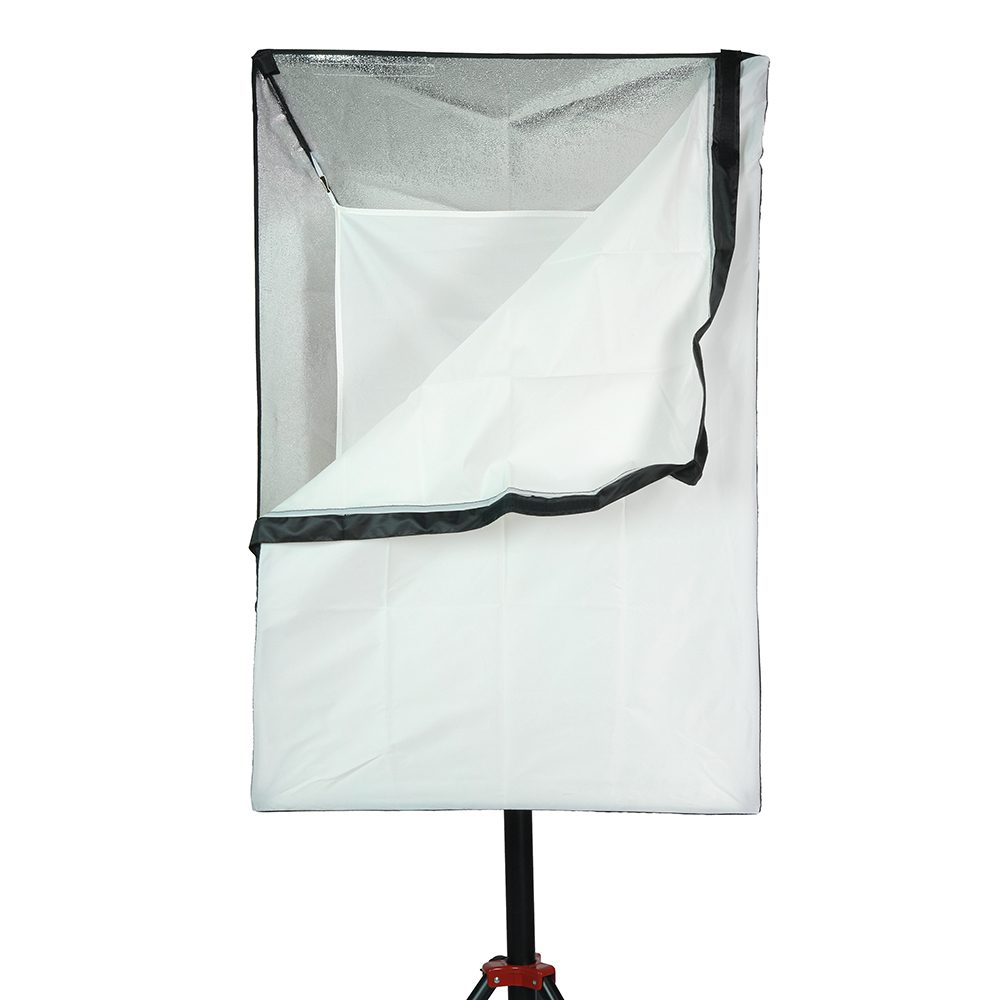 Закрытая конструкция софтбокса дает возможность избежать потерь светового потока. Отражатель с серебристой внутренней поверхностью создает равномерную засветку рассеивателя. Софтбокс упакован в чехол.