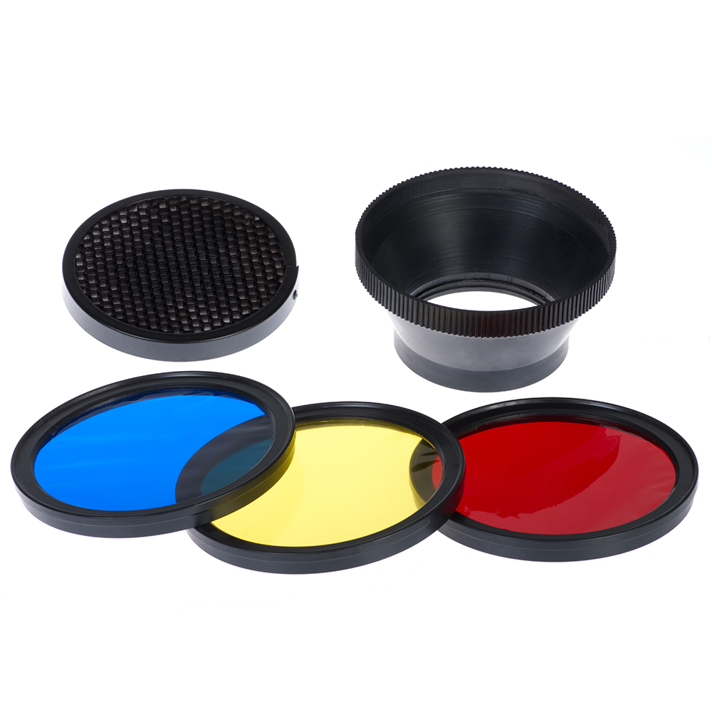 Набор насадок и фильтров для вспышек серии MF. В состав