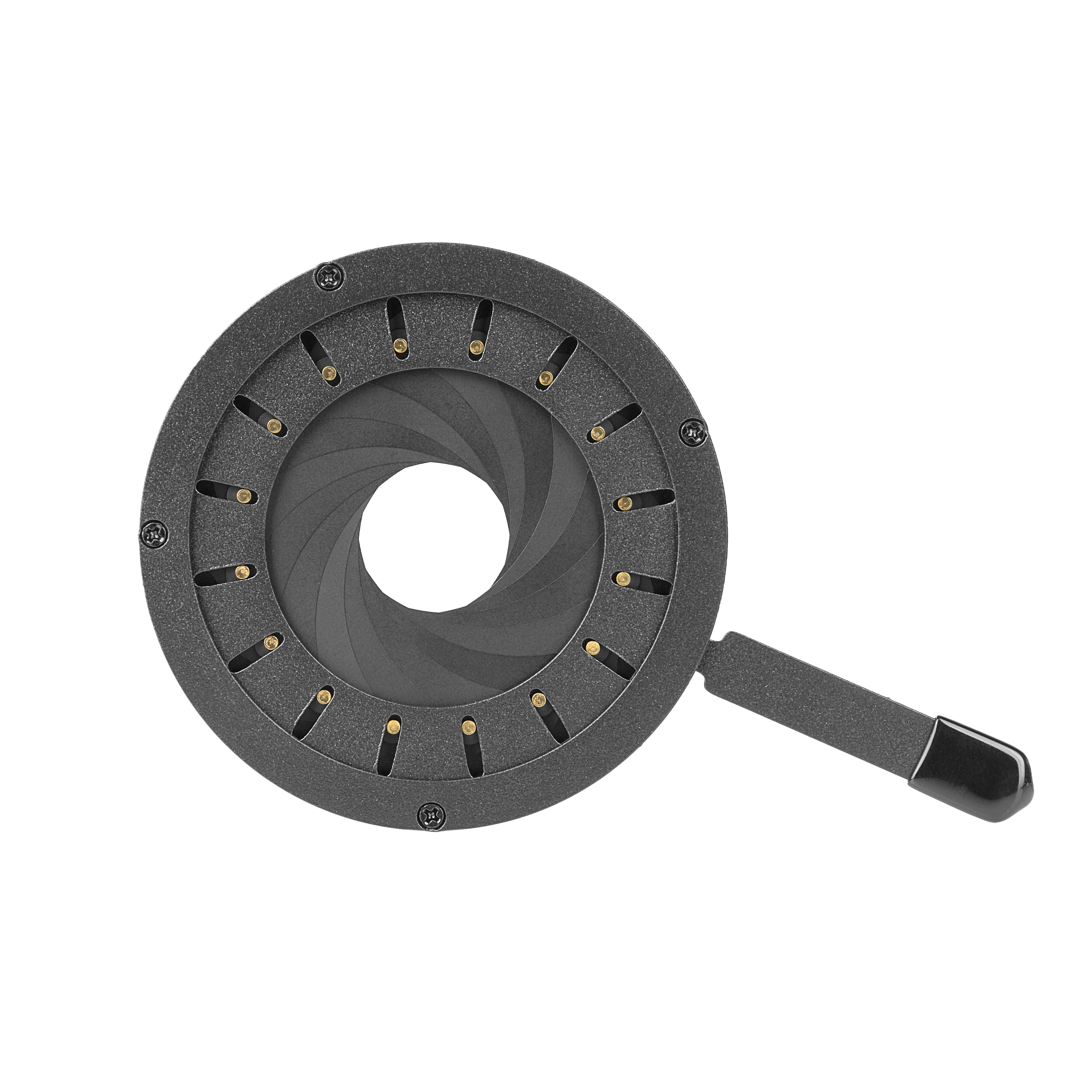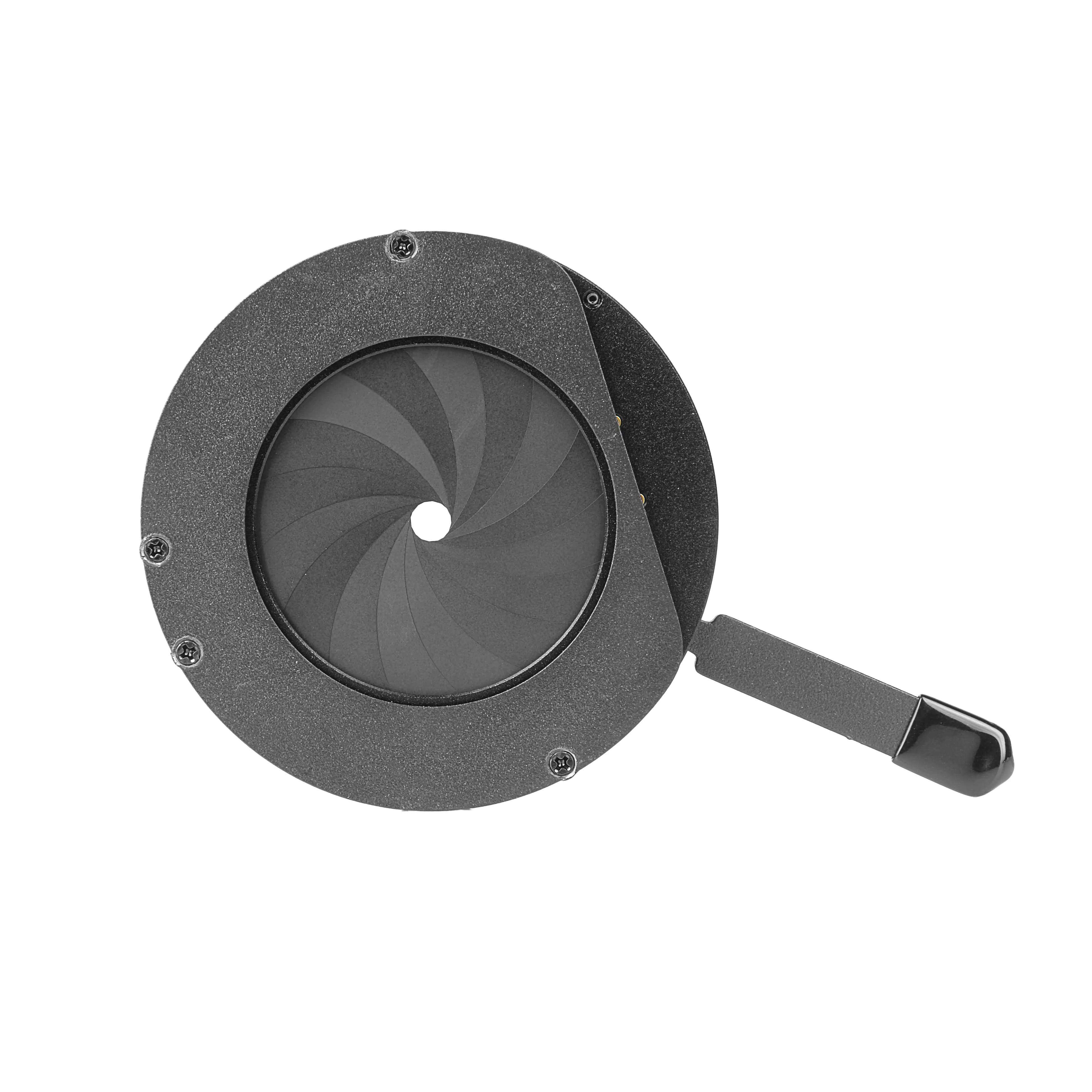 Ирисовая диафрагма изготовлена из прочной стали, что гарантирует долговечность механизма.