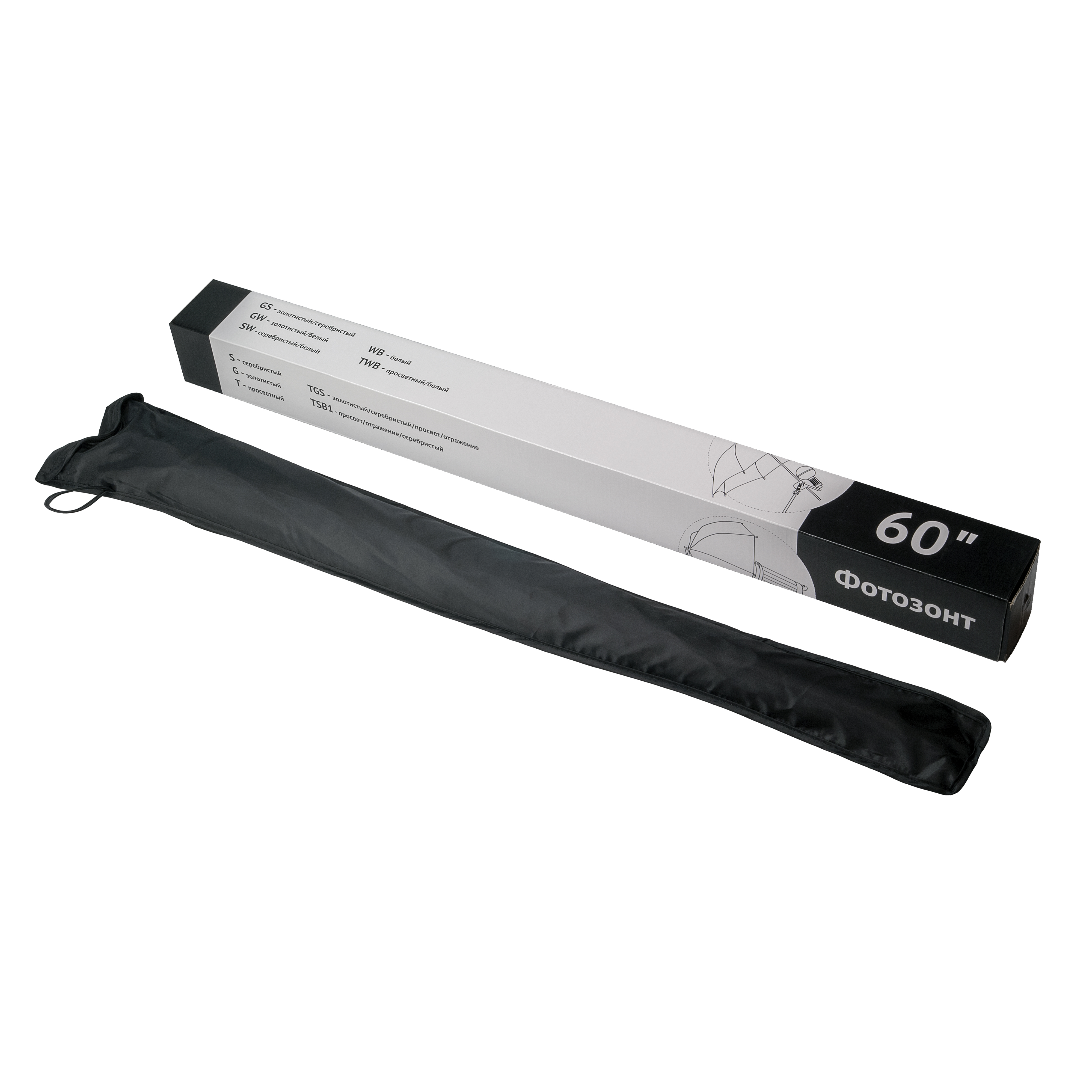 Falcon Eyes URK-60TSB1 – комбинированный зонт 2 в 1: просветный/серебристый. Диаметр 122 см.