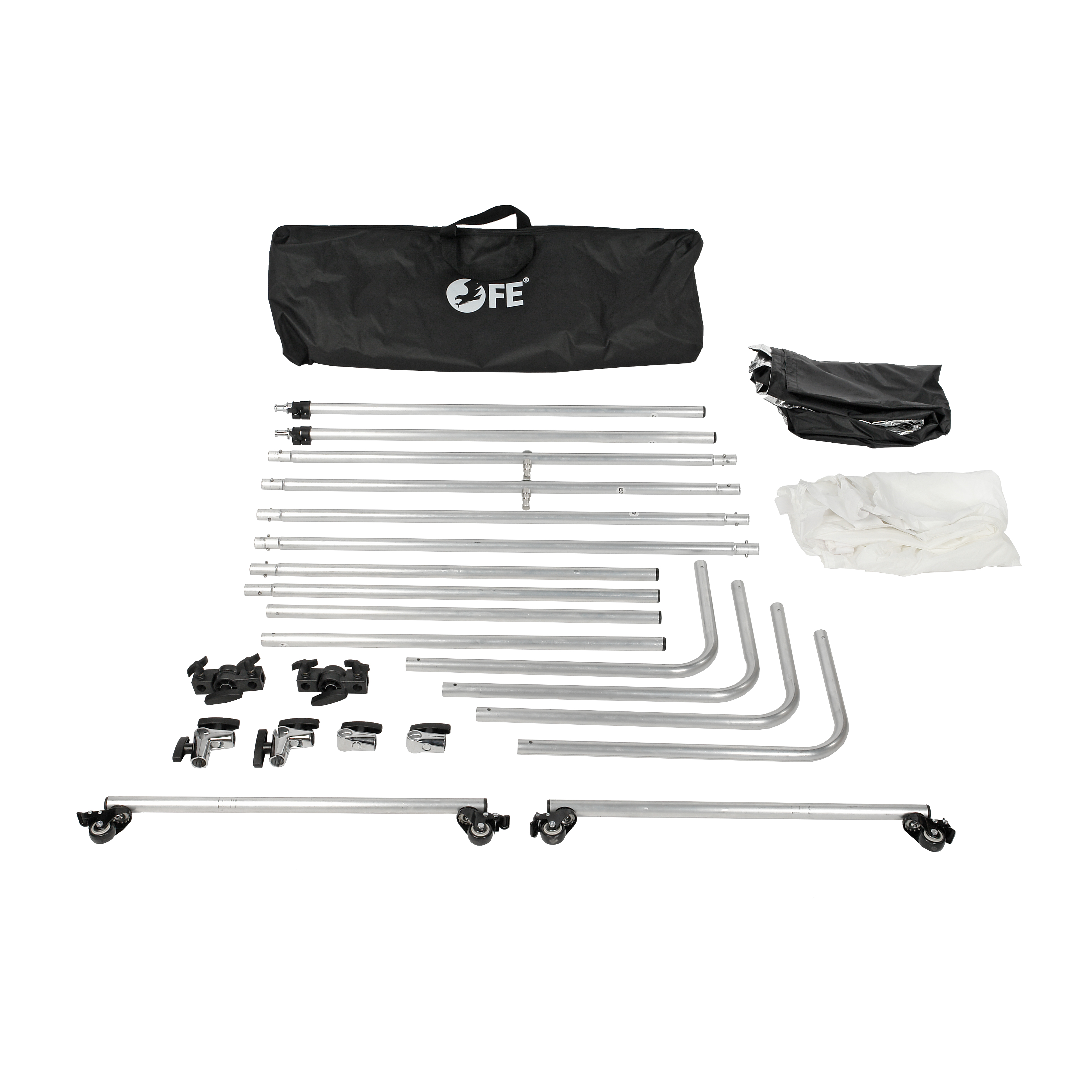 Фрост рама Falcon Eyes FF1520 представляет собой каркас с двумя полотнами в комплекте (белый просветный и черный/серебристый двухсторонний). Может служить светорассеивателем или отражателем при портретной, предметной и других видах фотосъемок. Также полотна можно использовать в качестве фона в студийной или выездной съемке.