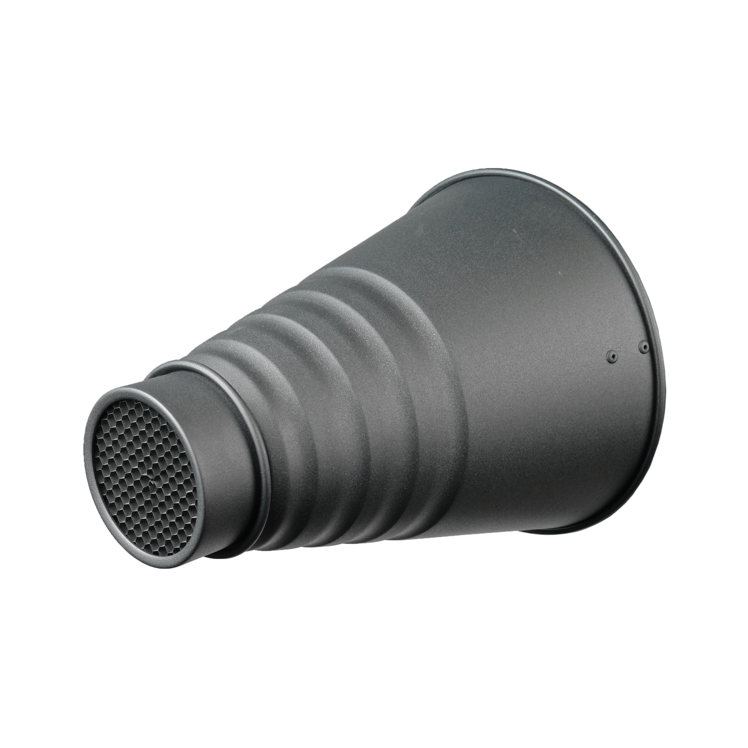 Насадка изготовлена из алюминиевого сплава, который сочетает легкость с высокой стойкостью к механическим повреждениям и коррозии. Такой материал выдерживает интенсивное использование в студийных условиях, не деформируется от тепла и обеспечивает надежное крепление к источнику света.