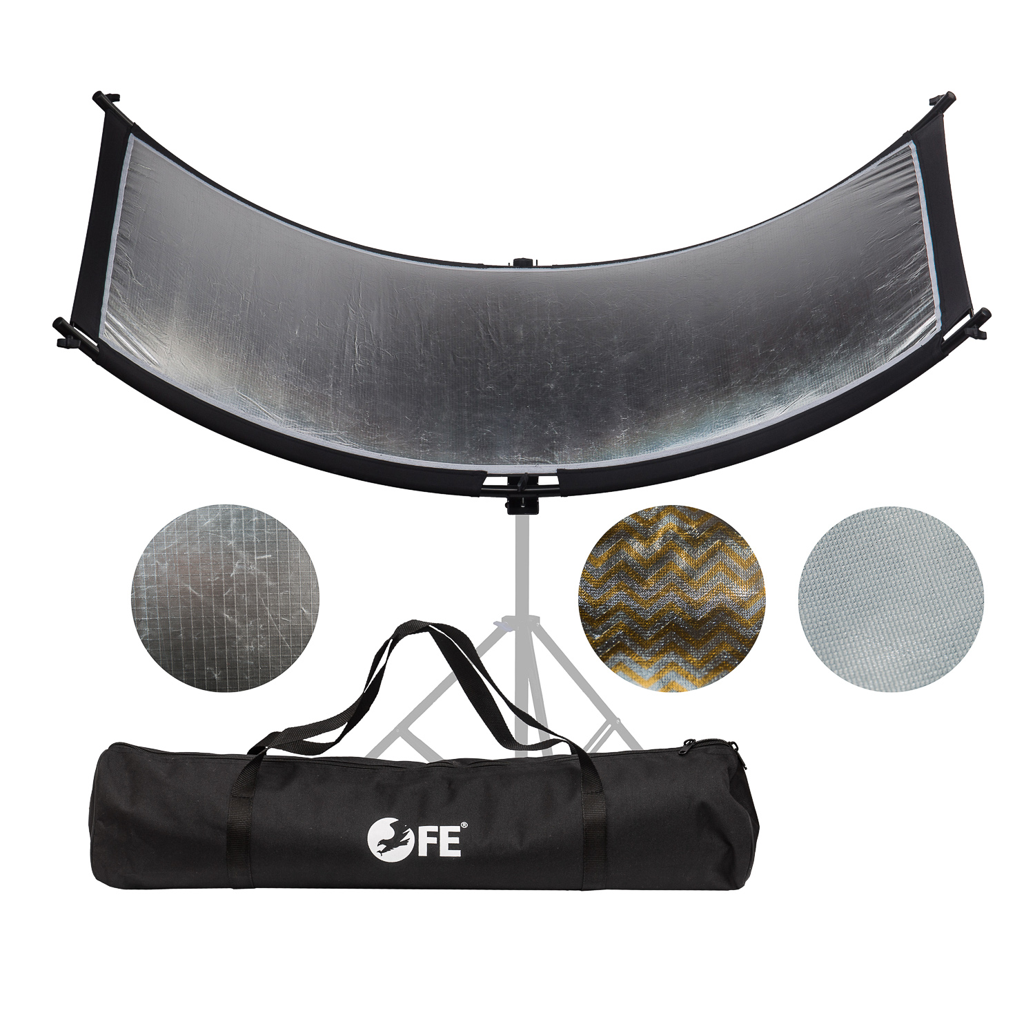 Особенность отражателя в его изогнутой форме, которая фокусирует падающий свет и создает оригинальное световое пятно на объекте съемки. К примеру при съемке портрета, человек приобретает оригинальный блик в глазах, который делает лицо привлекательным. Поэтому отражатели изогнутой формы популярны у фотографов, снимающих портреты (в том числе свадебные), а также фэшнфотографов и других направлений.