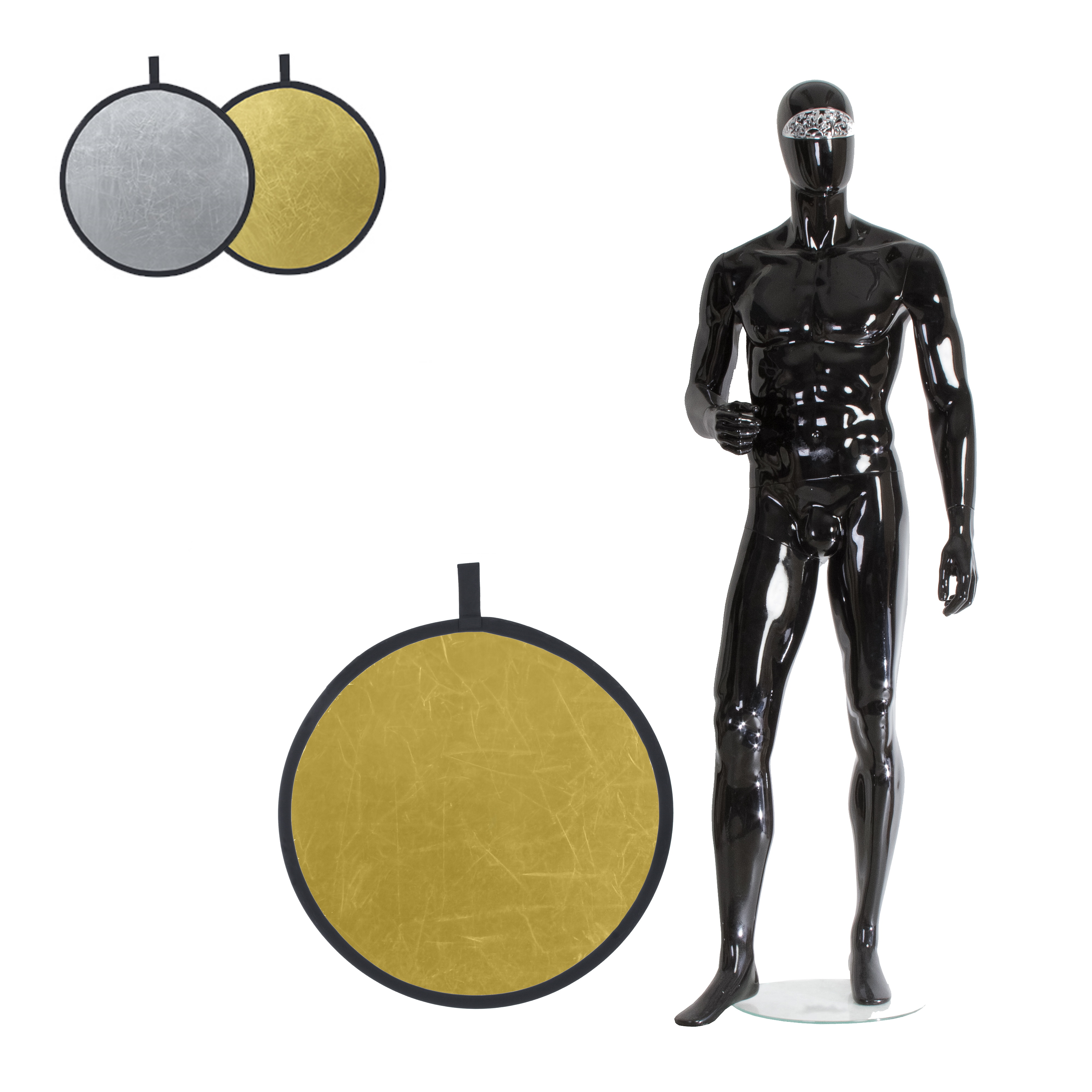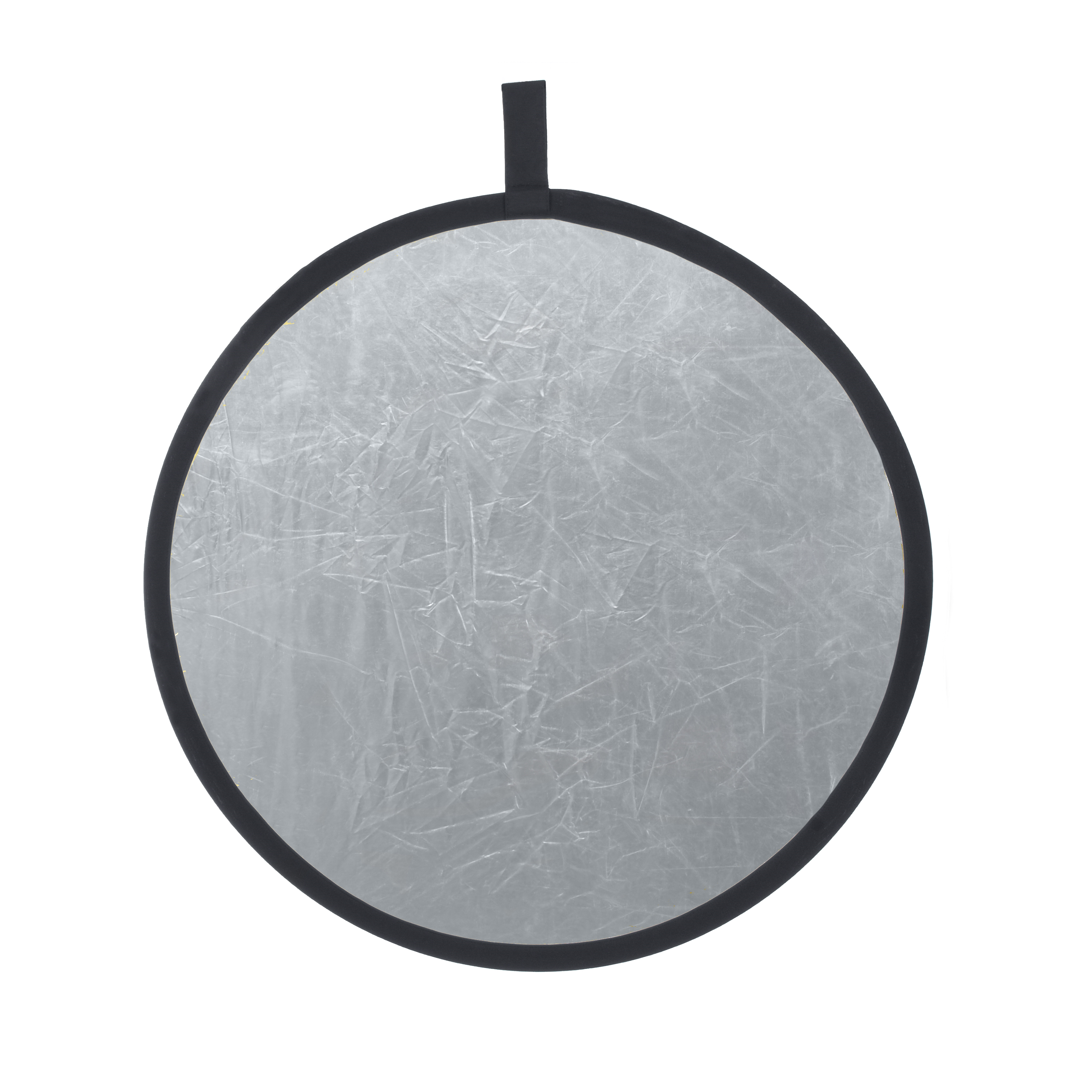 Двусторонний, цвет – золотистый/серебристый. Диаметр 56 см, подходит для поясных портретов и для подсветки отдельных участков кадра.