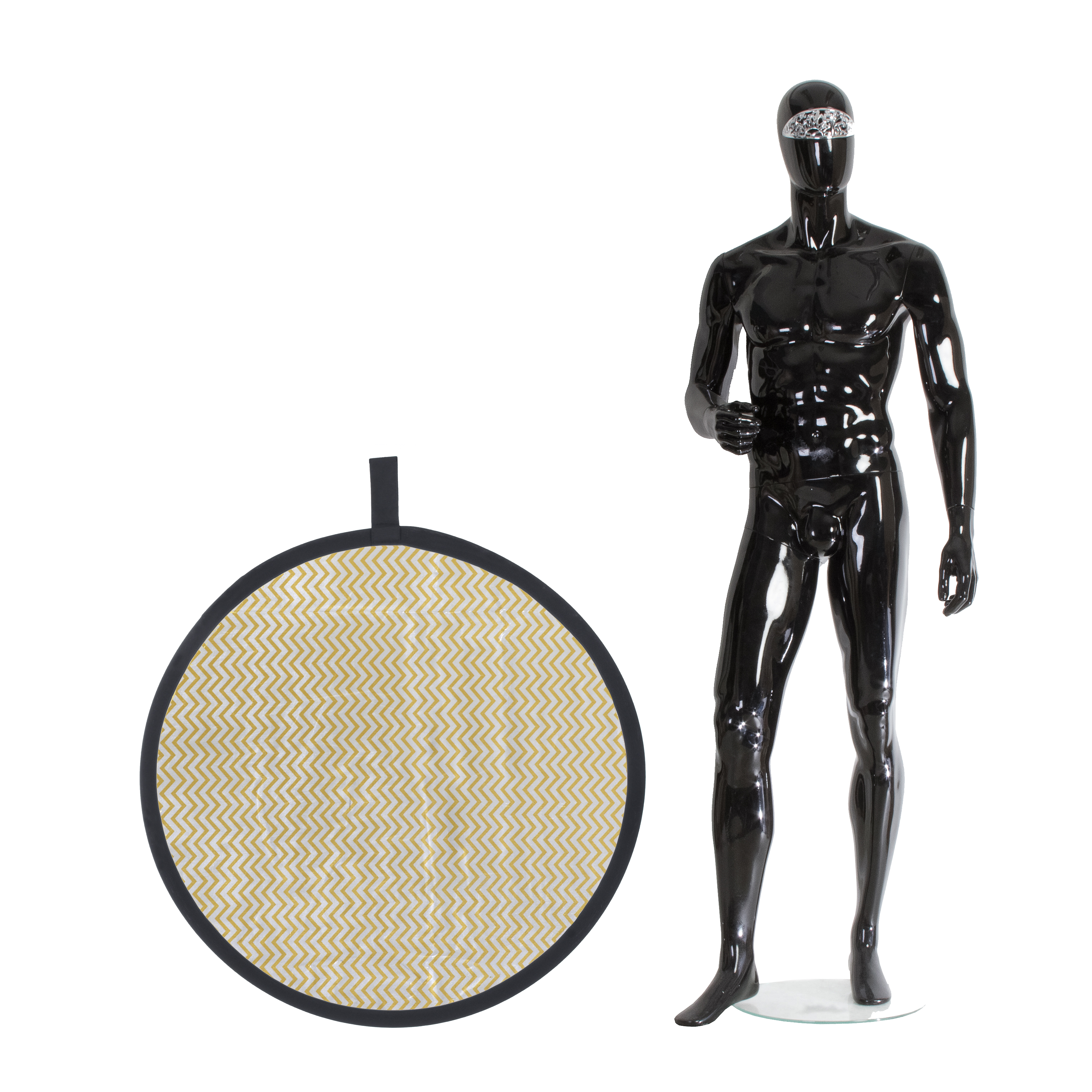 Односторонний круглый отражатель, золотистые и серебристые полоски. Диаметр 82 см, используется в предметной и портретной съемке, а также для подсветки отдельных участков кадра.