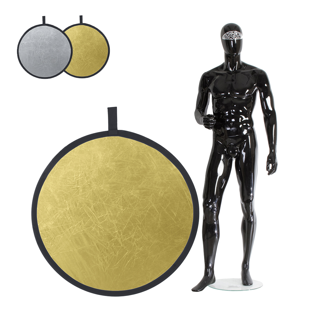 Двусторонний, цвет – золотистый/серебристый. Диаметр 106 см, подходит для предметной и портретной съемки, а также для подсветки отдельных участков кадра.