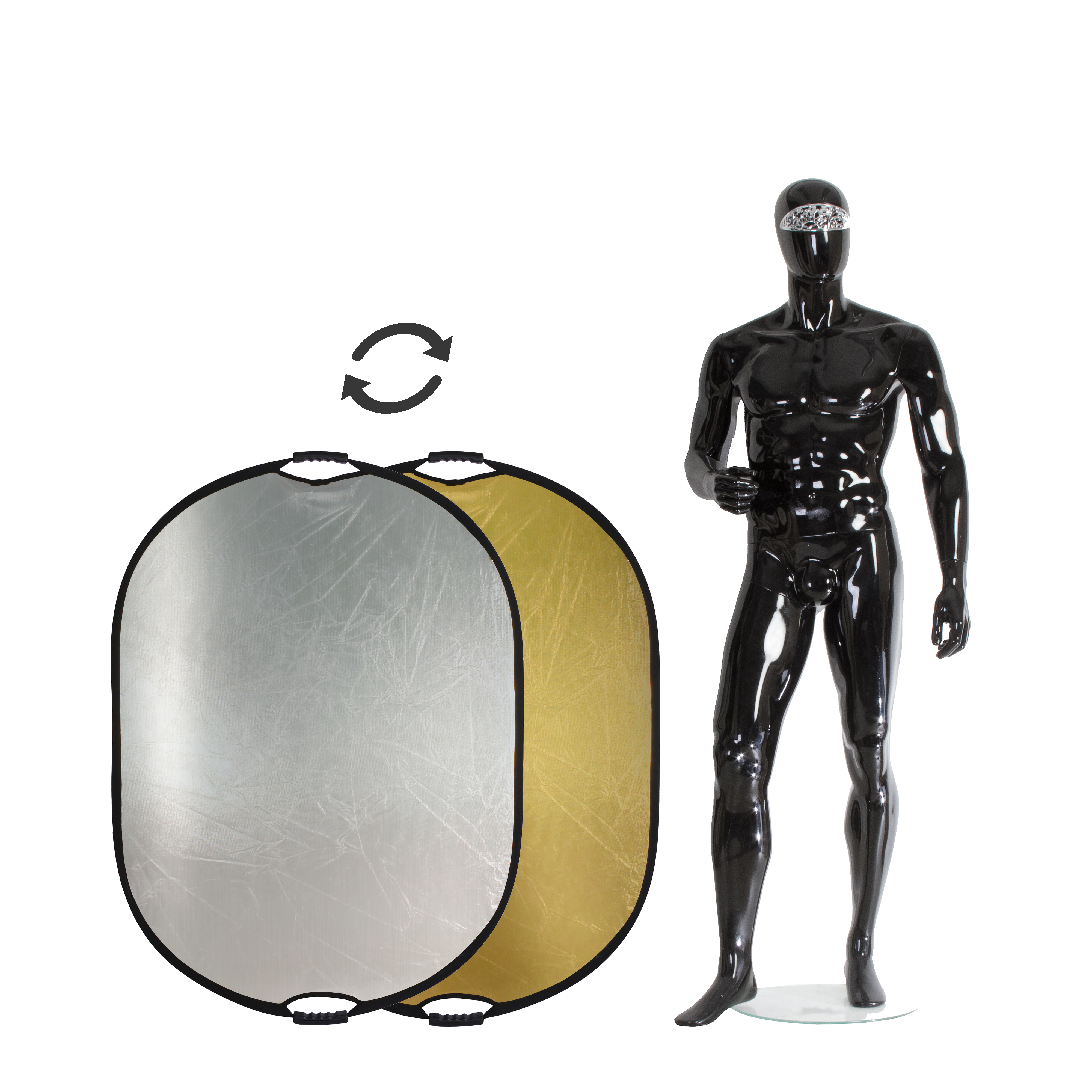 Стальной упругий каркас прошит по периметру капроновым карманом, диаметр отражателя в сложенном виде – 43 см. Две рукоятки, закрепленные на каркасе, оборудованы отверстиями с резьбой 1/4", что позволяет закрепить отражатель на штативах или любых опорах без использования специального держателя.