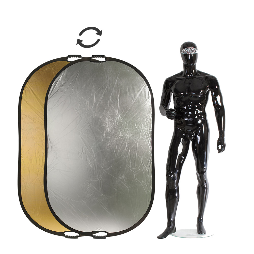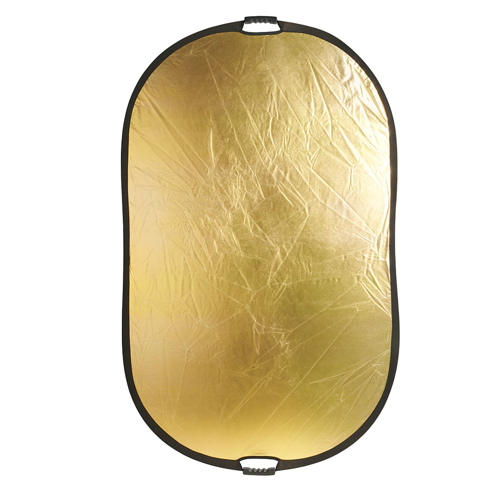 Falcon Eyes RFR-4066GS HL - двусторонний овальный отражатель, цвет - золотистый/серебристый, размер 100х165 см. Подходит для поясных и ростовых портретов и для подсветки отдельных участков кадра.