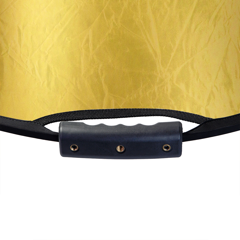 Стальной упругий каркас прошит по периметру капроновым карманом, диаметр отражателя в сложенном виде – 51 см. Две рукоятки, закрепленные на каркасе, оборудованы отверстиями с резьбой 1/4", что позволяет закрепить отражатель на штативах или любых опорах без использования специального держателя.