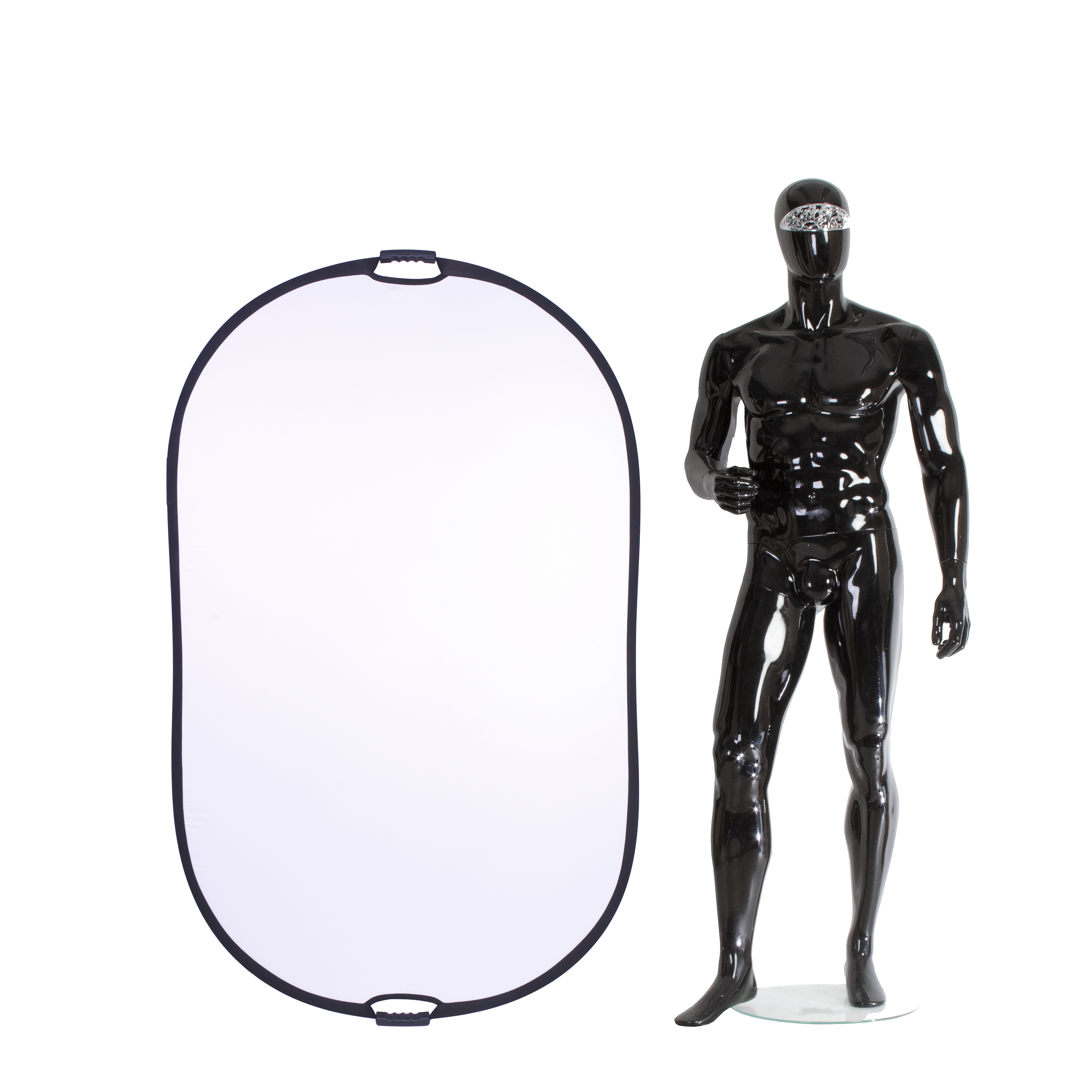 Односторонний овальный отражатель, цвет – белый на просвет. Размер 100х165 см, подходит для поясных портретов и для подсветки отдельных участков кадра, используется в предметной, портретной и других видах съемок для подсветки теней или создании светового акцента.