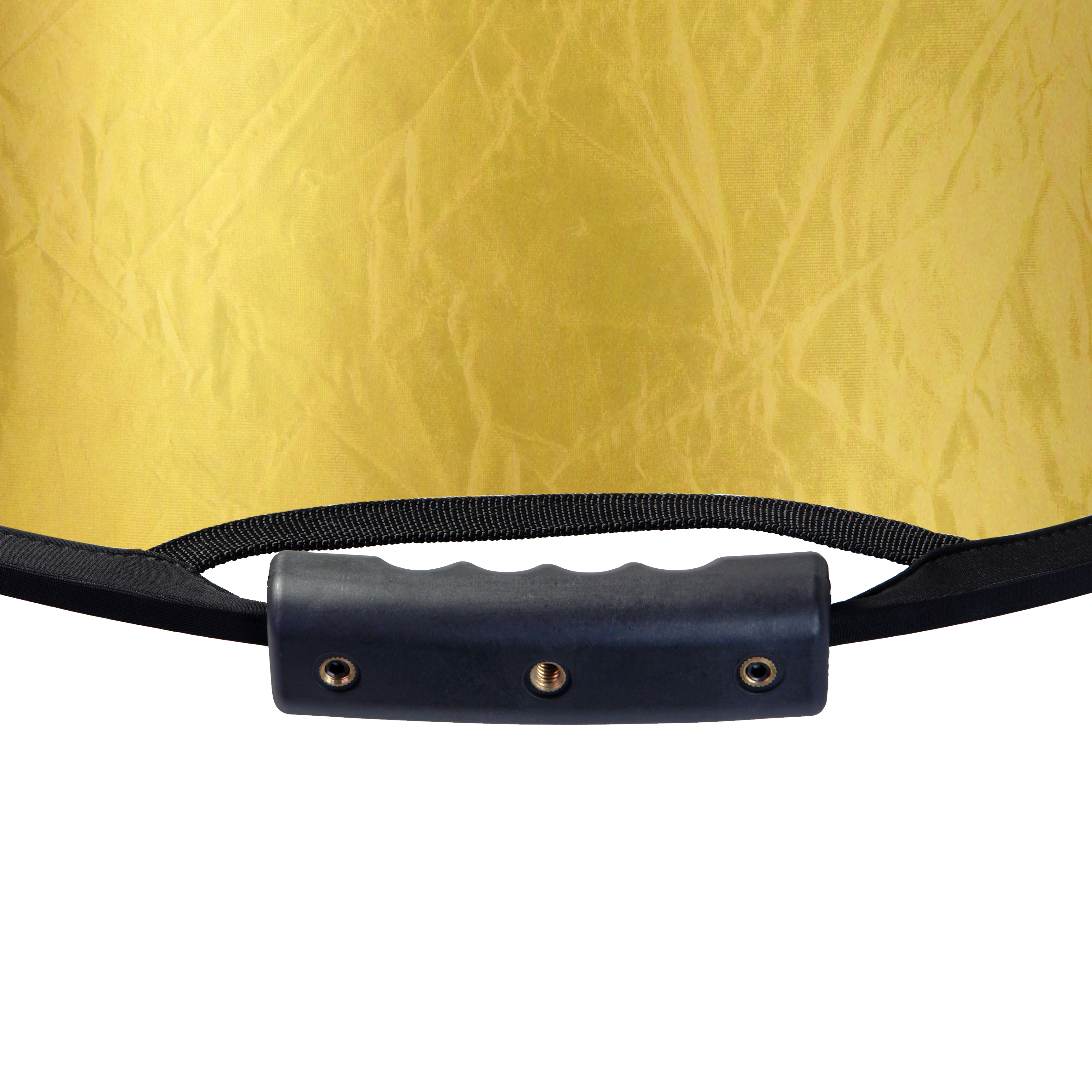 Стальной упругий каркас прошит по периметру капроновым карманом, диаметр отражателя в сложенном виде – 38 см. Две рукоятки, закрепленные на каркасе, оборудованы отверстиями с резьбой 1/4", что позволяет закрепить отражатель на штативах или любых опорах без использования специального держателя.
