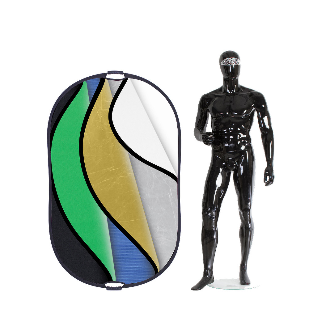 Овальный отражатель 7 в 1: золотистый/серебристый/белый отражающий/ белый просвечивающий/черный/зеленый/синий. Размер 102х168 см, подходит для поясных портретов или подсветки отдельных участков кадра.