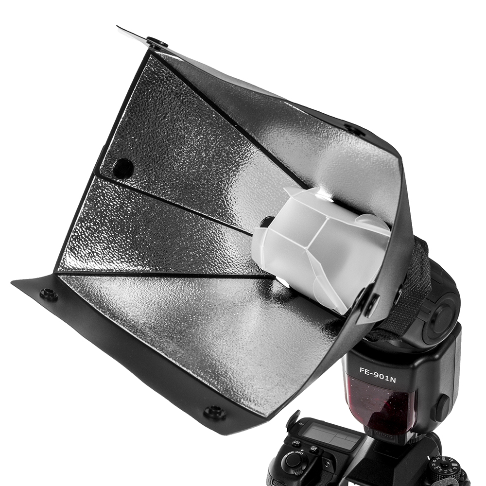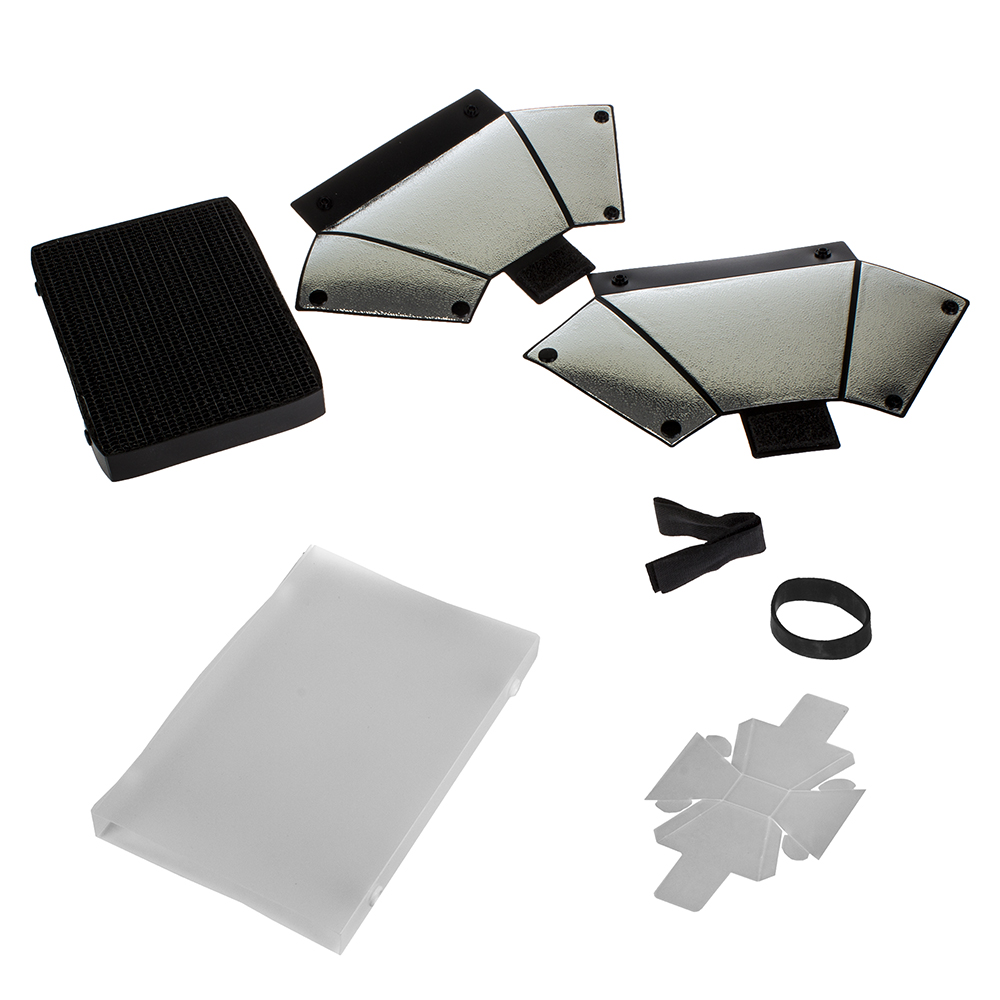Рефлектор с серебристой отражающей поверхностью, рабочий размер 180×150 мм. Рефлектор применяется как самостоятельно, для создания направленного и концентрированного пучка света (отражающая поверхность рефлектора смягчает переход из света в тень), так и с пластиковым рассеивателем (для смягчения и создания равномерной плотности светового пучка) или с сотовой насадкой (для ограничения светового потока и формирования узконаправленного пучка света).