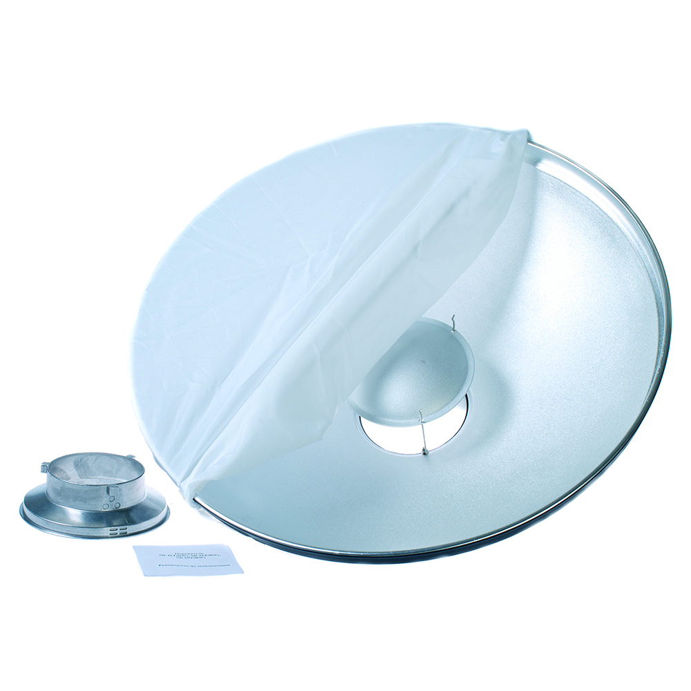 Рефлектор изготовлен из металла. Кайма по краю предназначена для установки различных модификаторов, в комплекте тканевый рассеиватель. Сотовая насадка приобретается отдельно, к этой модели рекомендуем Falcon Eyes HC-55.