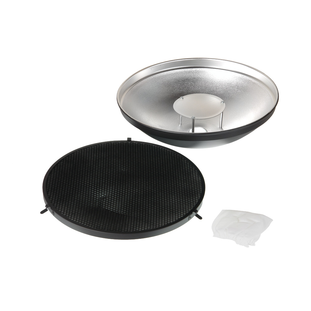 Портретная тарелка Godox AD-S3 для вспышки Godox WITSTRO позволяет создавать равномерное бестеневое освещение вокруг объекта. Возможна установка сот (грид) и белого диффузного рассеивателя