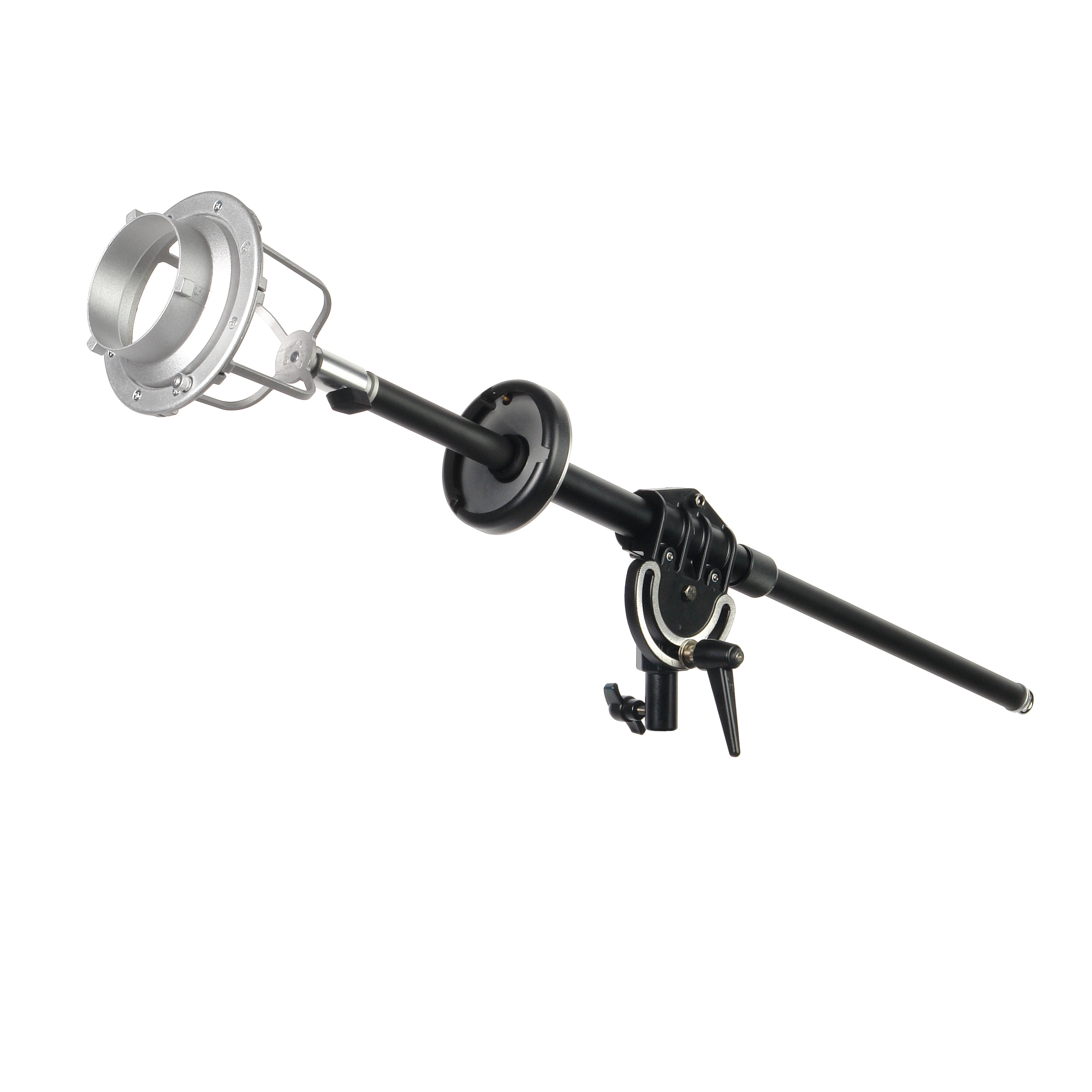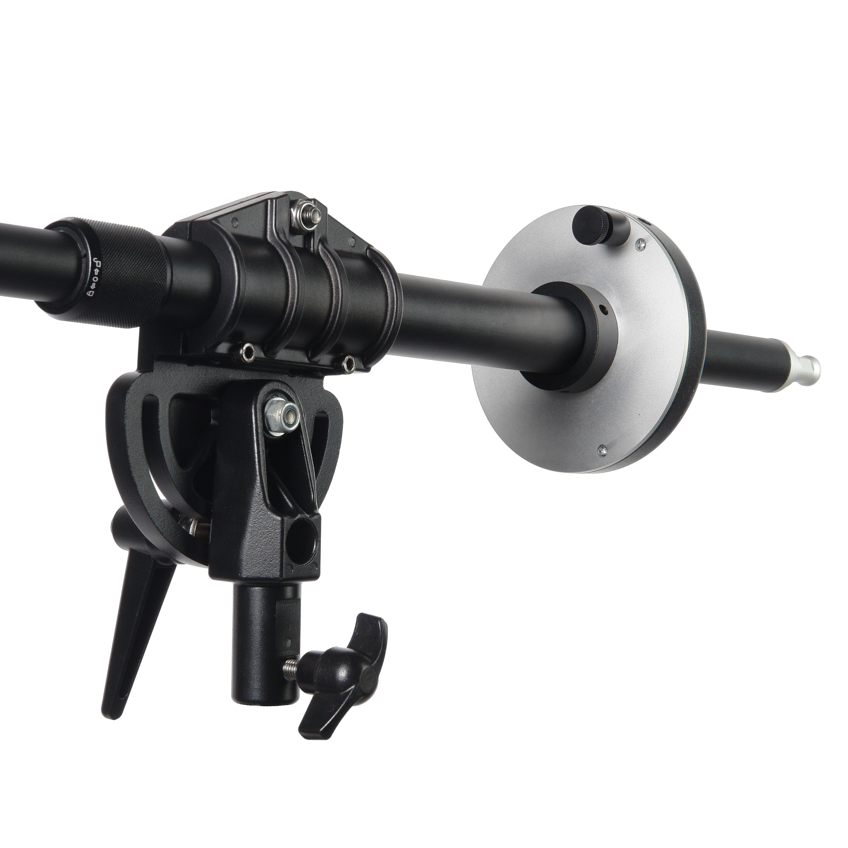 Поскольку штанга предназначена для работы с большими тяжелыми софтбоксами и студийными моноблоками, все основные узлы штанги выполнены из толстостенного металла. Поэтому перекладина, байонетное кольцо, съемный адаптер для крепления осветителя, кронштейн и другие детали выдерживают нагрузки при работе (вес установленного оборудования до 8 кг). Штанга прослужит долгие годы, не меняя рабочих свойств.