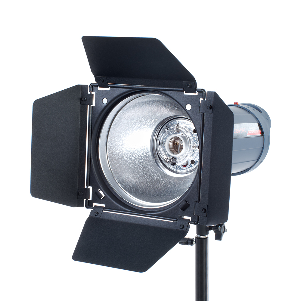 Шторки ограничивают световой поток и позволяют настроить освещение в соответствии с требованиями фотографа. Изготовлены из металла. Посадочный диаметр 175 мм, комплект совместим с любыми рефлекторами размером 7″.