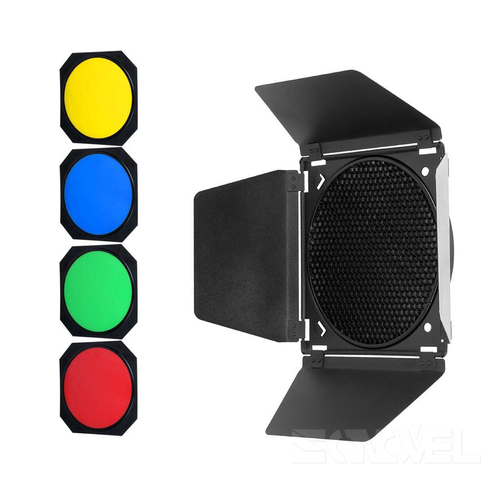 Шторки с набором фильтров Godox BD-04 предназначены для управления световым потоком, а также придания ему того или иного оттенка за счет установки цветных фильтров.