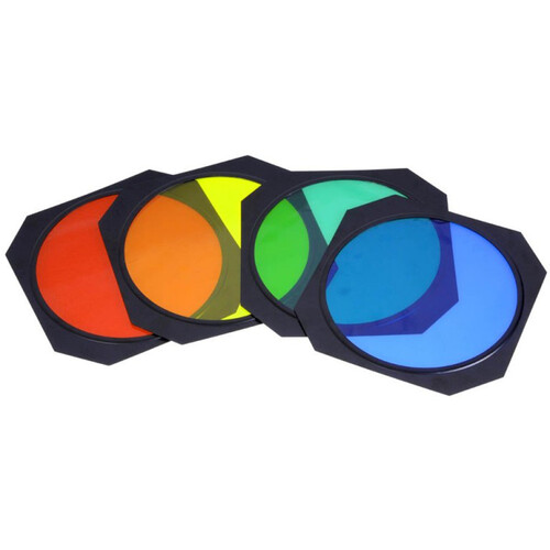 В комплект входит сотовая насадка и четыре цветных гелевых фильтра (желтый, красный, синий и зеленый).