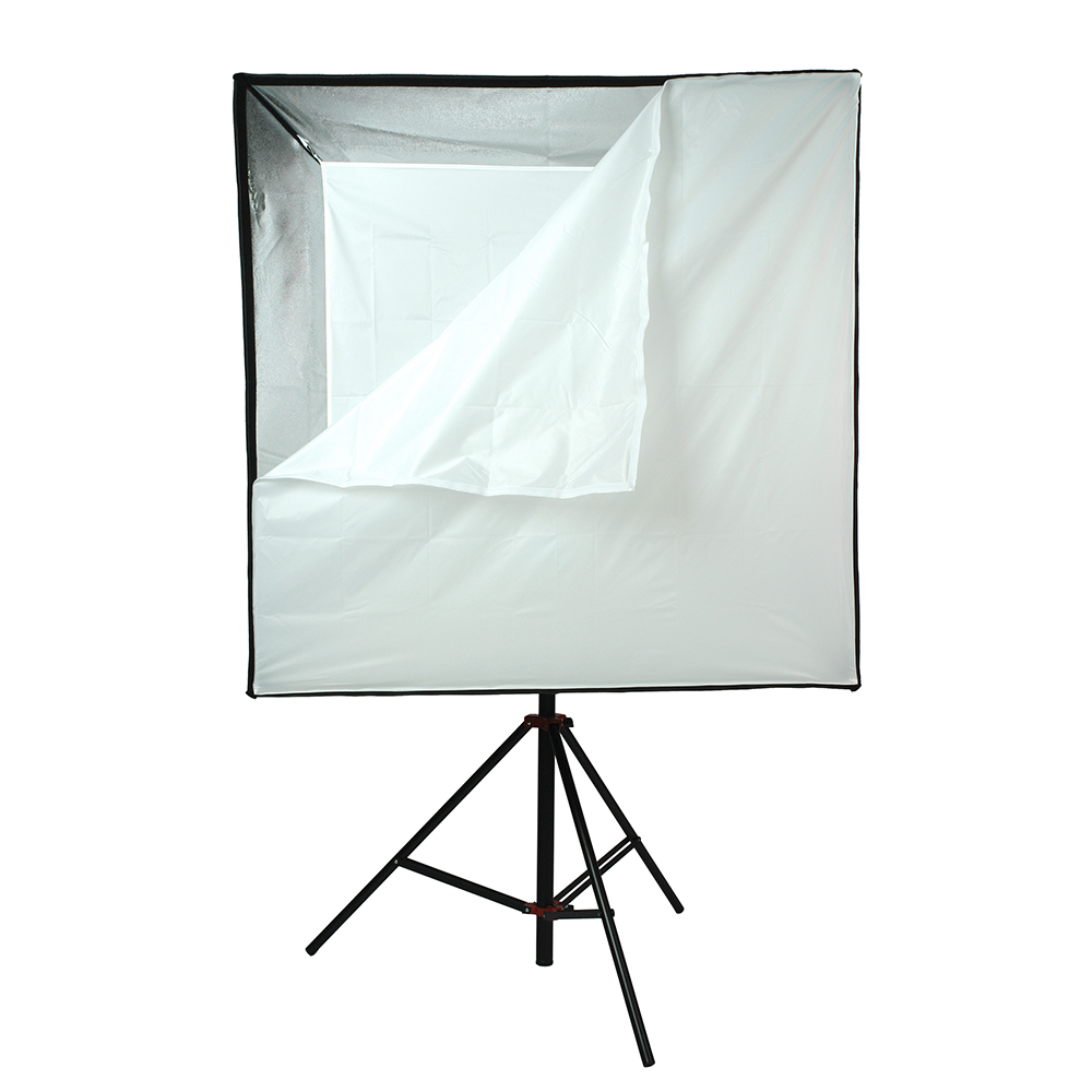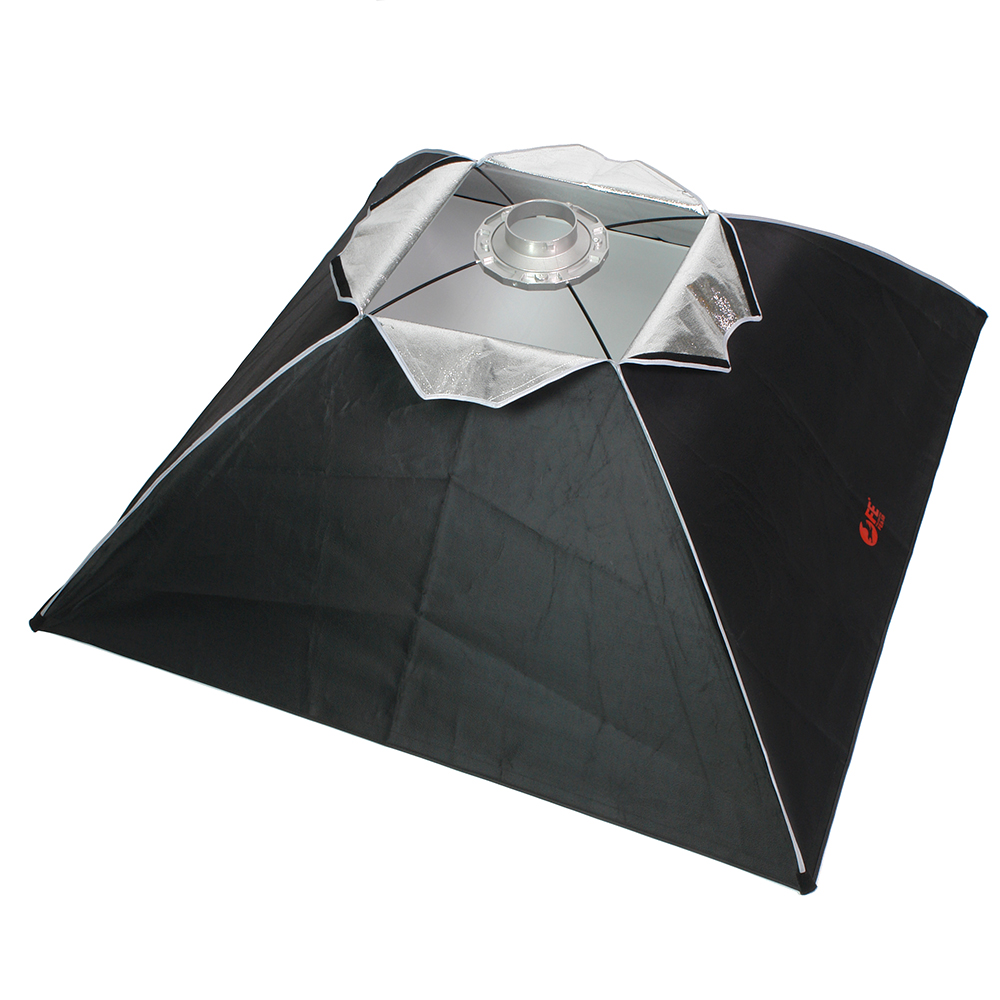 Закрытая конструкция позволяет избежать нежелательных бликов и потерь светового потока. Отражатель, с серебристой тканью внутри, обеспечивает равномерную засветку рассеивателя, который в свою очередь, благодаря большой поверхности, смягчает формируемые тени. Дополнительный внутренний диффузор улучшает равномерность светового потока. Наконечники на упругих металлических спицах не повреждают тканевые спицедержатели софтбокса и облегчают сборку конструкции.