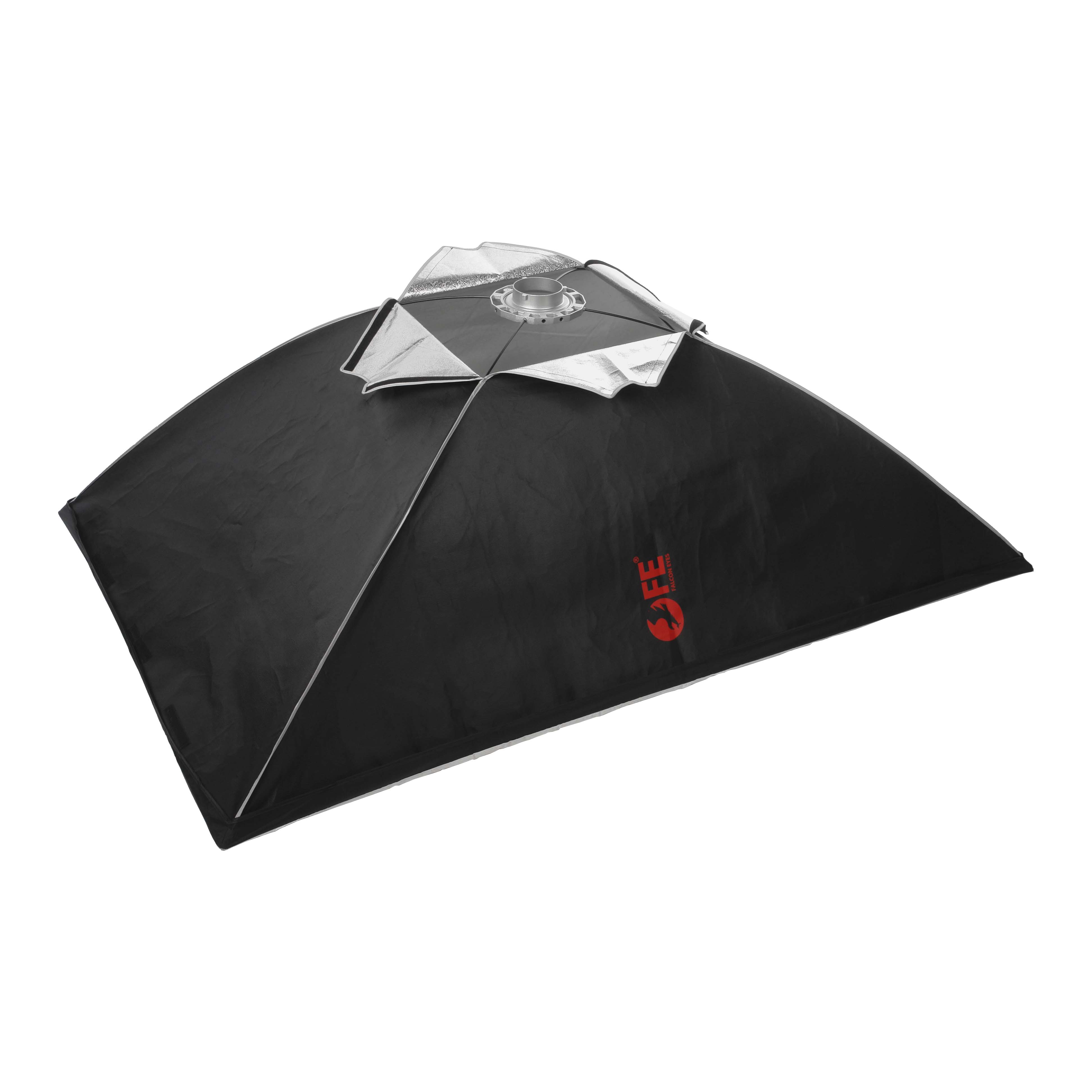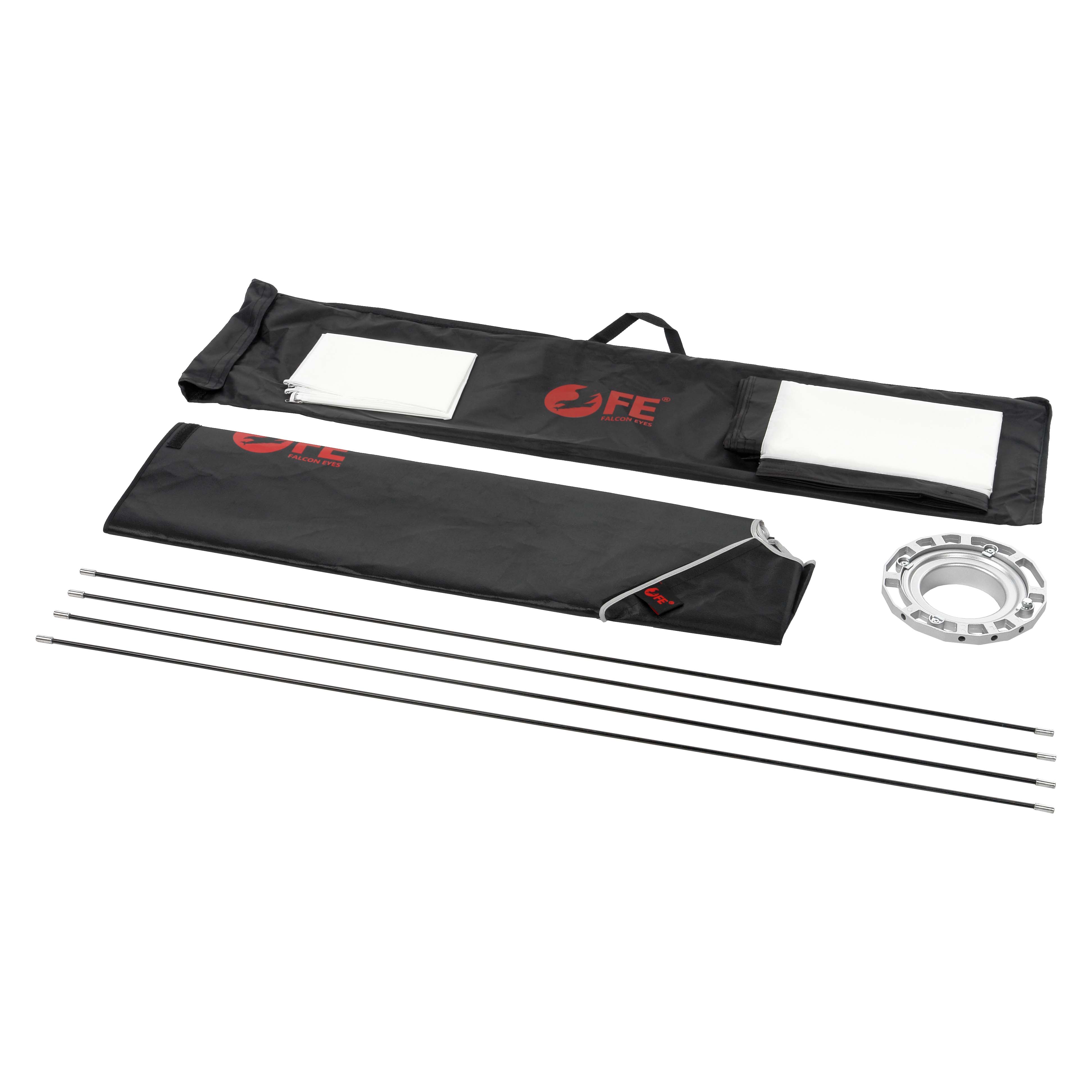 Световой модификатор состоит из тента-отражателя, внешнего и внутреннего тканевых рассеивателей (диффузоров), байонетного кольца (крепления) и четырех стальных спиц. В комплект также входит чехол для хранения и транспортировки софтбокса.