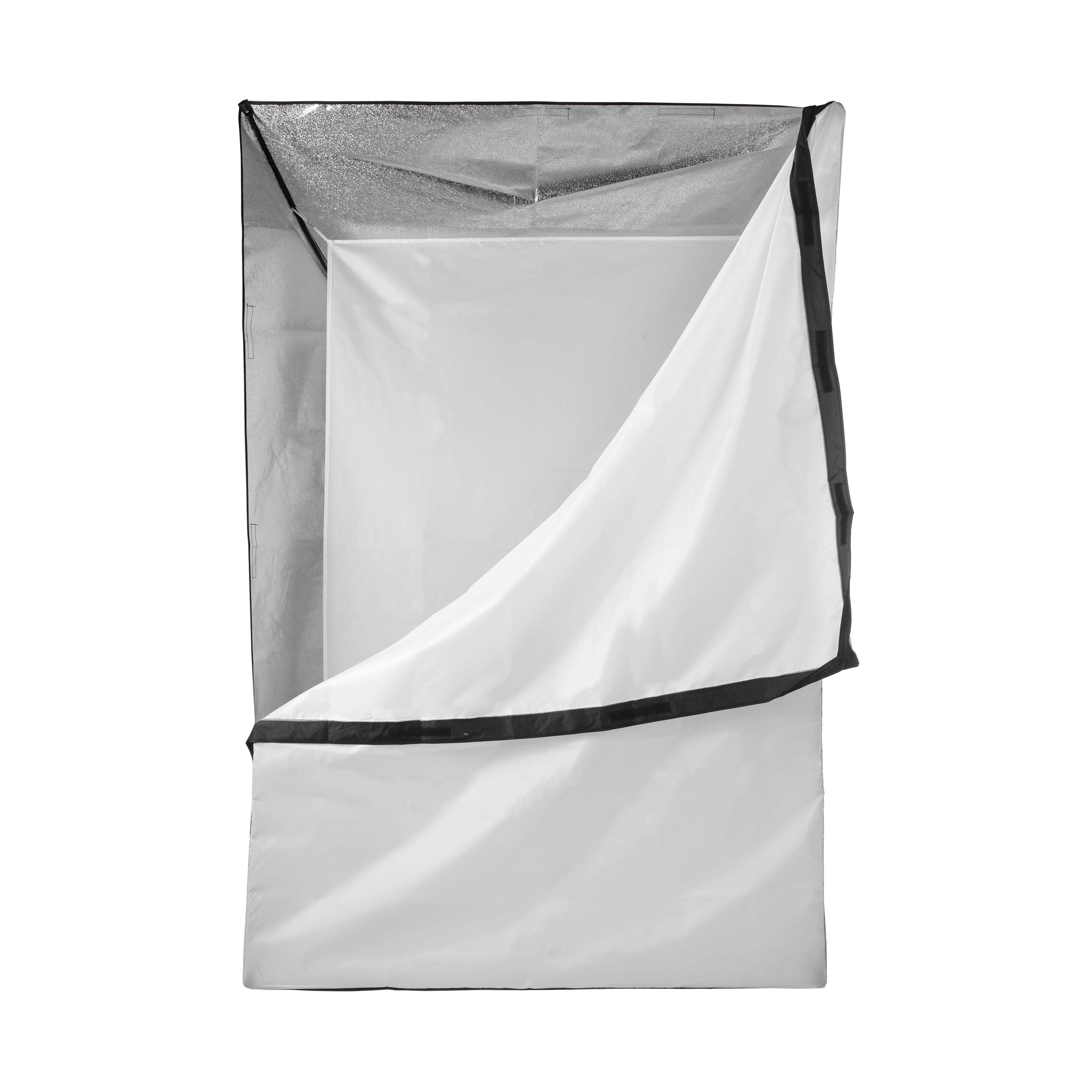 Тент-отражатель софтбокса изготавливается из специальной синтетической ткани с внутренней серебристой светоотражающей поверхностью. Серебристая поверхность обеспечивает равномерное распределение светового потока внутри софтбокса с минимальными потерями на светоотражение.