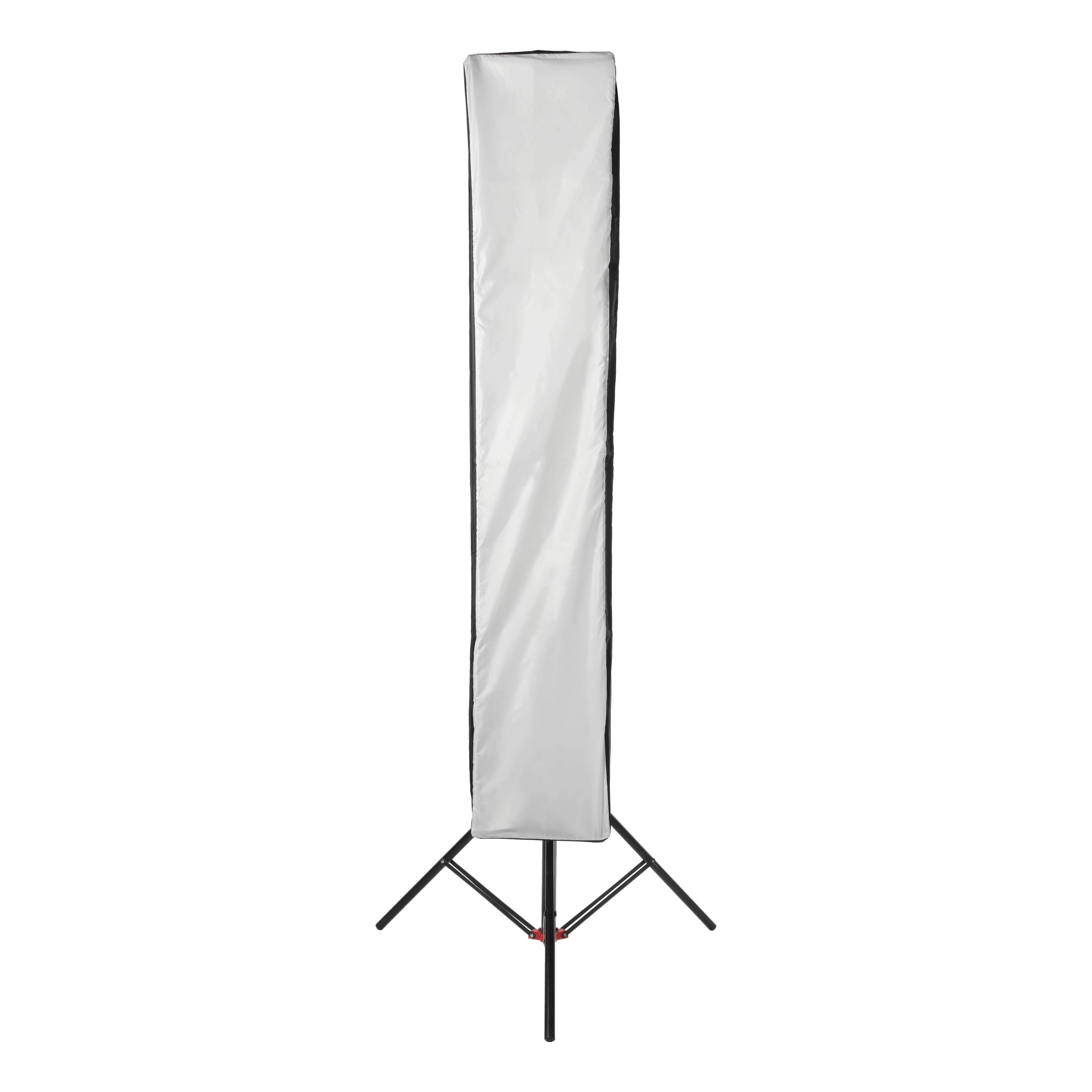 Софтбокс-стрипбокс помогает создать мягкое рассеянное освещение, предотвращая появление глубоких теней или бликов. Закрытая конструкция позволяет получить равномерный направленный поток света и избежать нежелательных потерь светового потока. Софтбоксы дают «живой» блик в глазах и на поверхностях объекта, имитирующий естественное освещение.