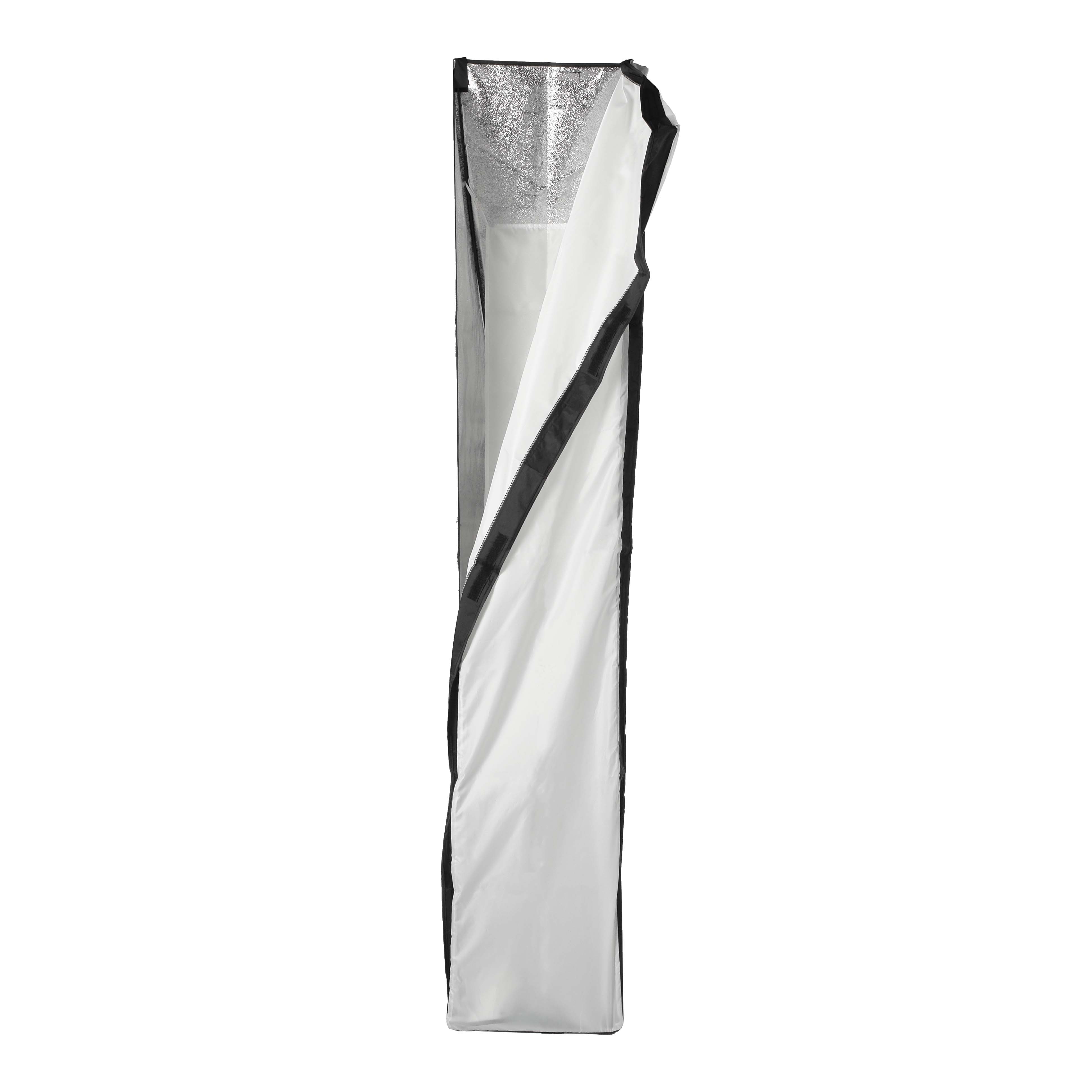 Тент-отражатель софтбокса изготавливается из специальной синтетической ткани с внутренней серебристой светоотражающей поверхностью. Серебристая поверхность обеспечивает равномерное распределение светового потока внутри софтбокса с минимальными потерями на светоотражение.