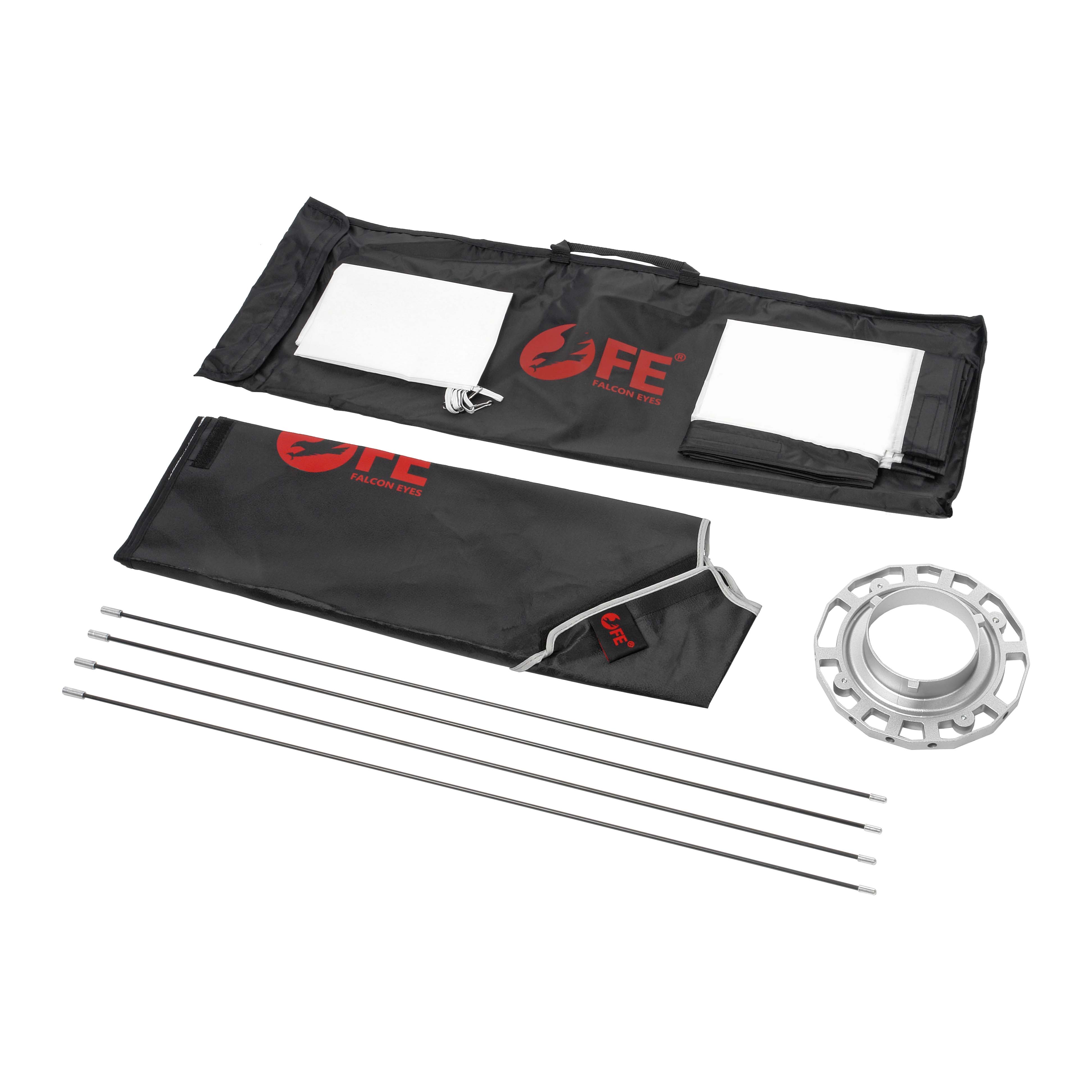 Софтбокс FEA-SBII 80120 BW – новый световой прямоугольный модификатор Falcon Eyes для управления световым потоком от импульсных вспышек и светодиодных LED осветителей с байонетом Bowens. Софтбокс может применяться с осветителями, у которых мощность пилотных ламп до 250 Вт.
