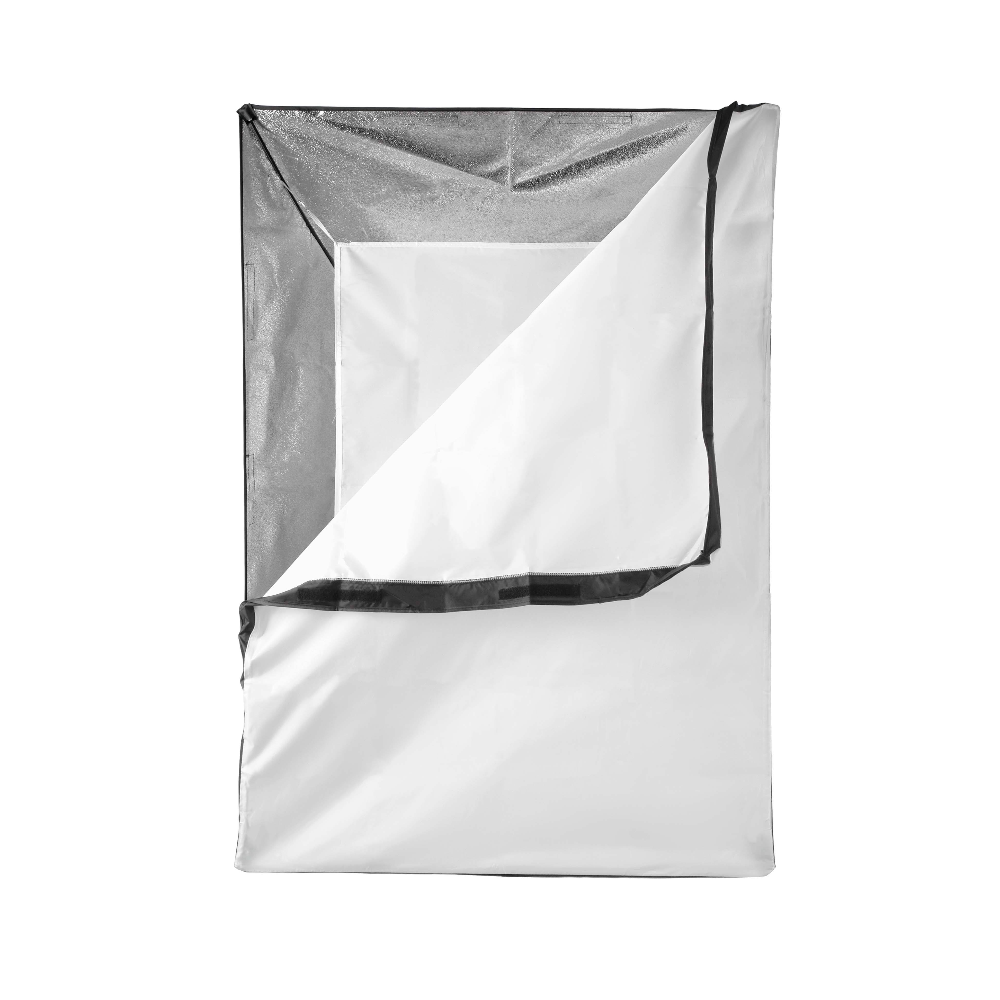 Тент-отражатель софтбокса изготавливается из специальной синтетической ткани с внутренней серебристой светоотражающей поверхностью. Серебристая поверхность обеспечивает равномерное распределение светового потока внутри софтбокса с минимальными потерями на светоотражение.