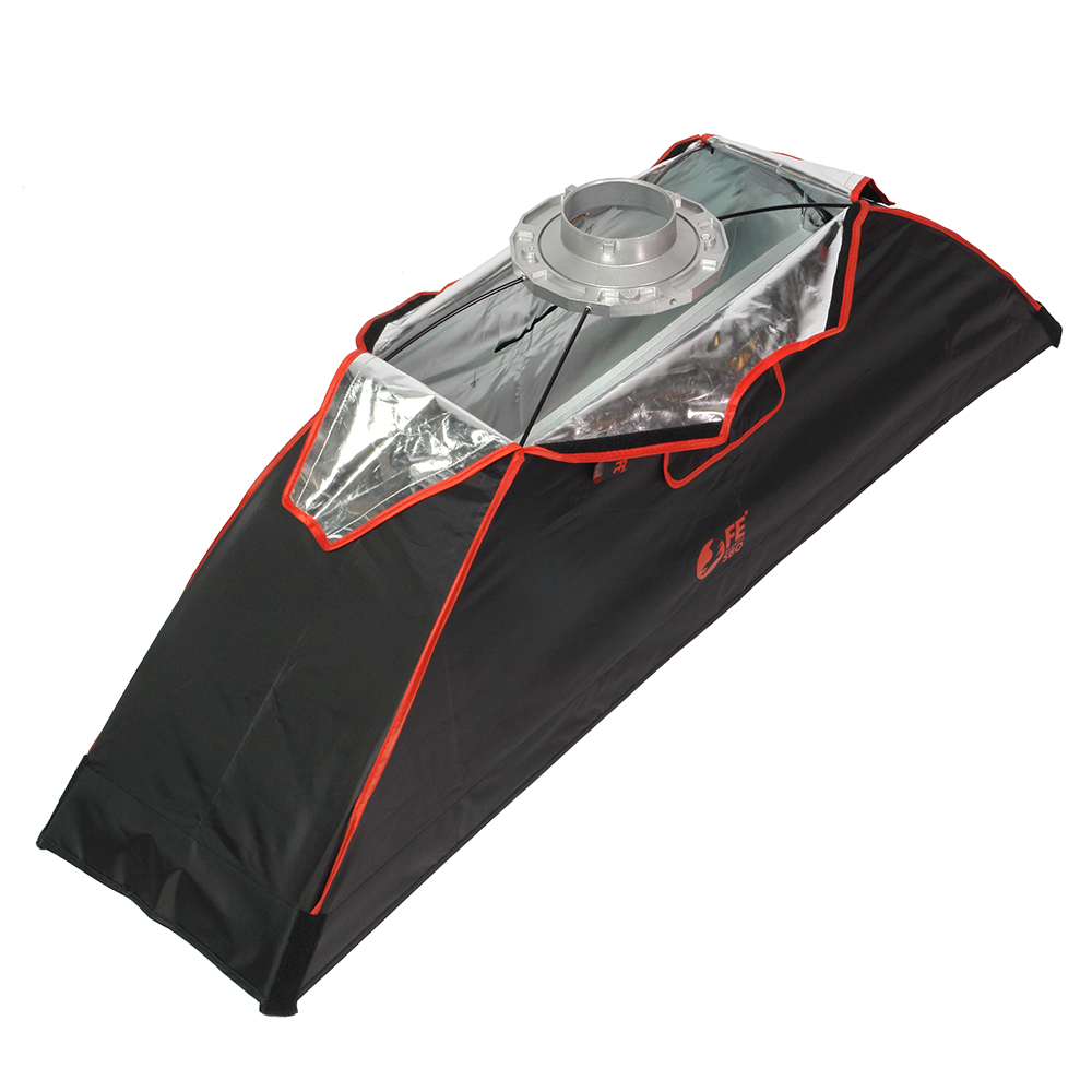Закрытая конструкция позволяет избежать нежелательных бликов и потерь светового потока. Отражатель, с серебристой тканью внутри, обеспечивает равномерную засветку рассеивателя, который в свою очередь, благодаря большой поверхности, смягчает формируемые тени. Дополнительный внутренний диффузор улучшает равномерность светового потока. Наконечники на упругих металлических спицах не повреждают тканевые спицедержатели софтбокса и облегчают сборку конструкции.