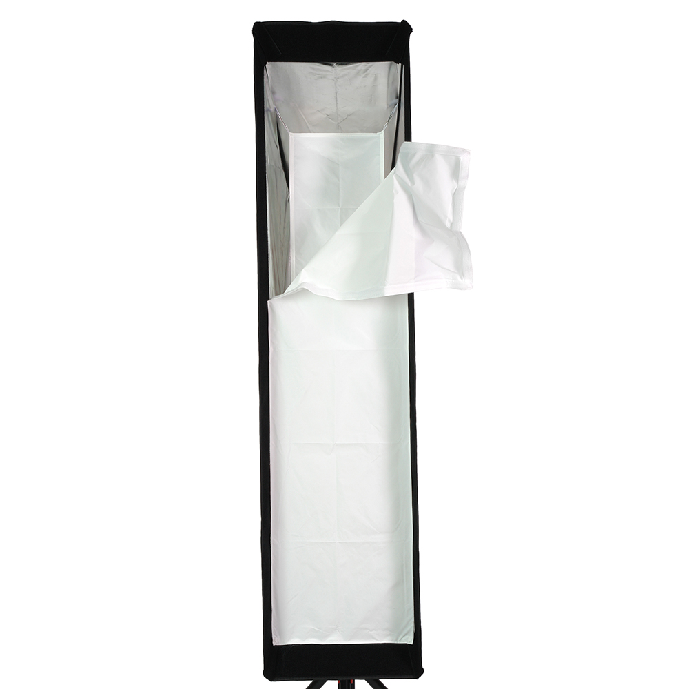 Софтбоксы с соотношением сторон более чем 1:3 называют стрипбоксами, их используют для ростовой съемки, создания градиентной подсветки на фоне, в предметной съемке для получения яркого длинного блика, и там, где нужно получить направленный узкий свет, например для подсветки волос и плеч сверху.