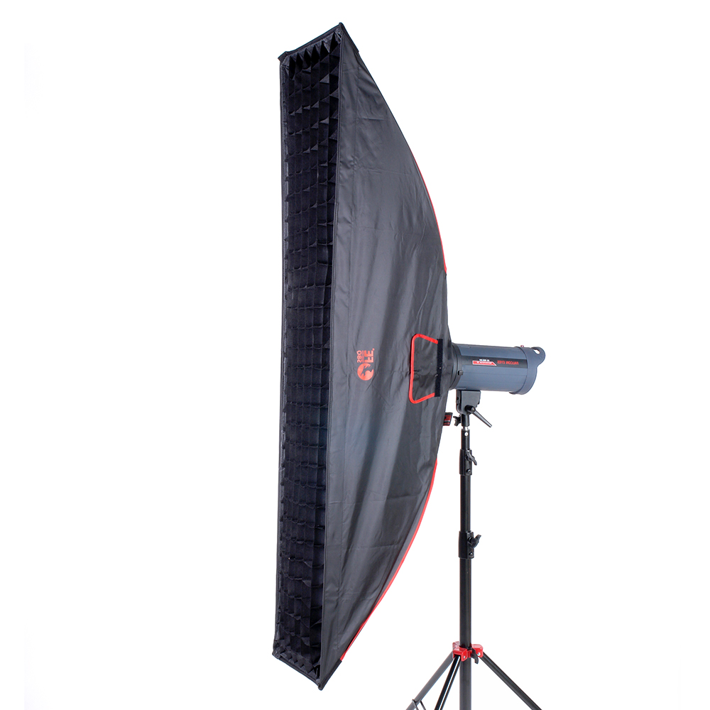 Софтбокс Falcon Eyes SBQ-30160 BW жаропрочный с сотовой насадкой — световой модификатор для студийных осветительных приборов с байонетом Bowens, предназначен для создания мягкого рассеянного освещения без резких теней и бликов. Размер софтбокса 30×160 см. Может использоваться практически с любыми студийными вспышками или галогеновыми осветителями мощностью до 1000 Вт.