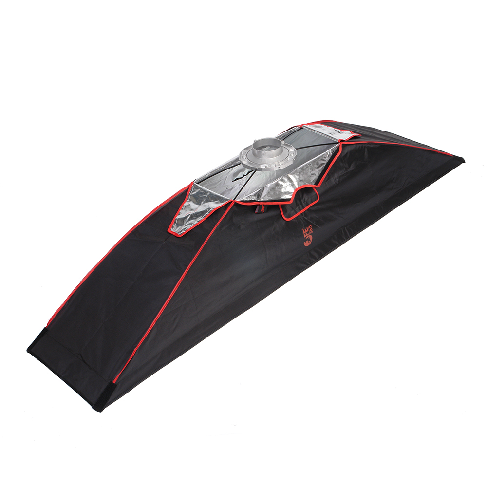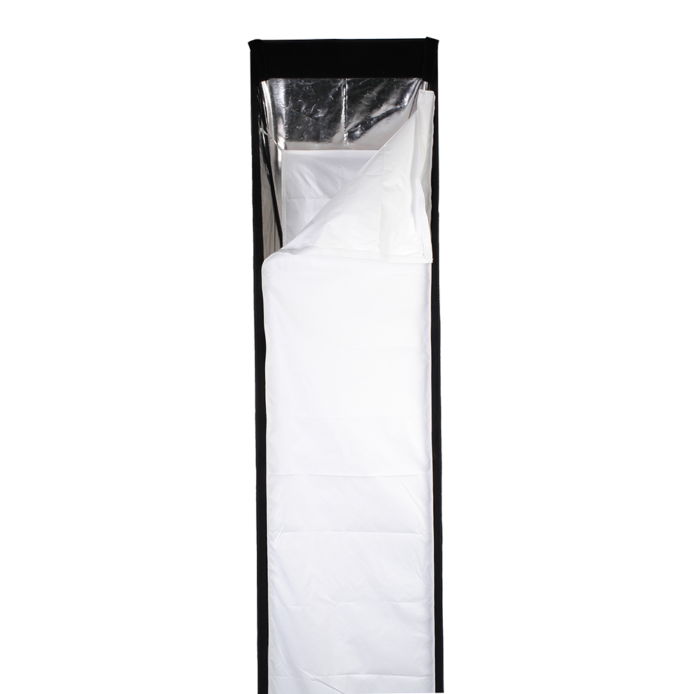 Закрытая конструкция позволяет избежать нежелательных бликов и потерь светового потока. Отражатель, с серебристой тканью внутри, обеспечивает равномерную засветку рассеивателя, который в свою очередь, благодаря большой поверхности, смягчает формируемые тени. Дополнительный внутренний диффузор улучшает равномерность светового потока. Наконечники на упругих металлических спицах не повреждают тканевые спицедержатели софтбокса и облегчают сборку конструкции.