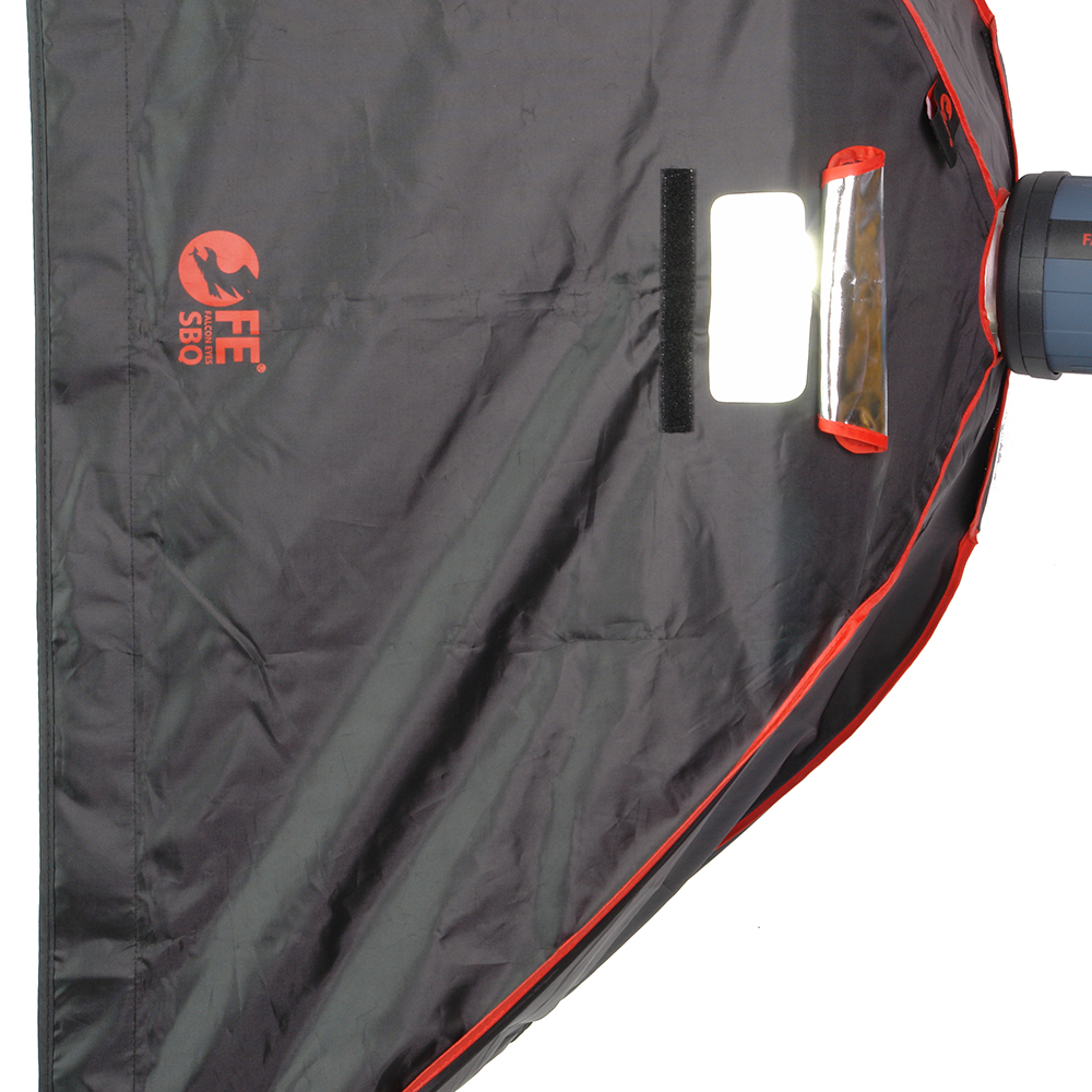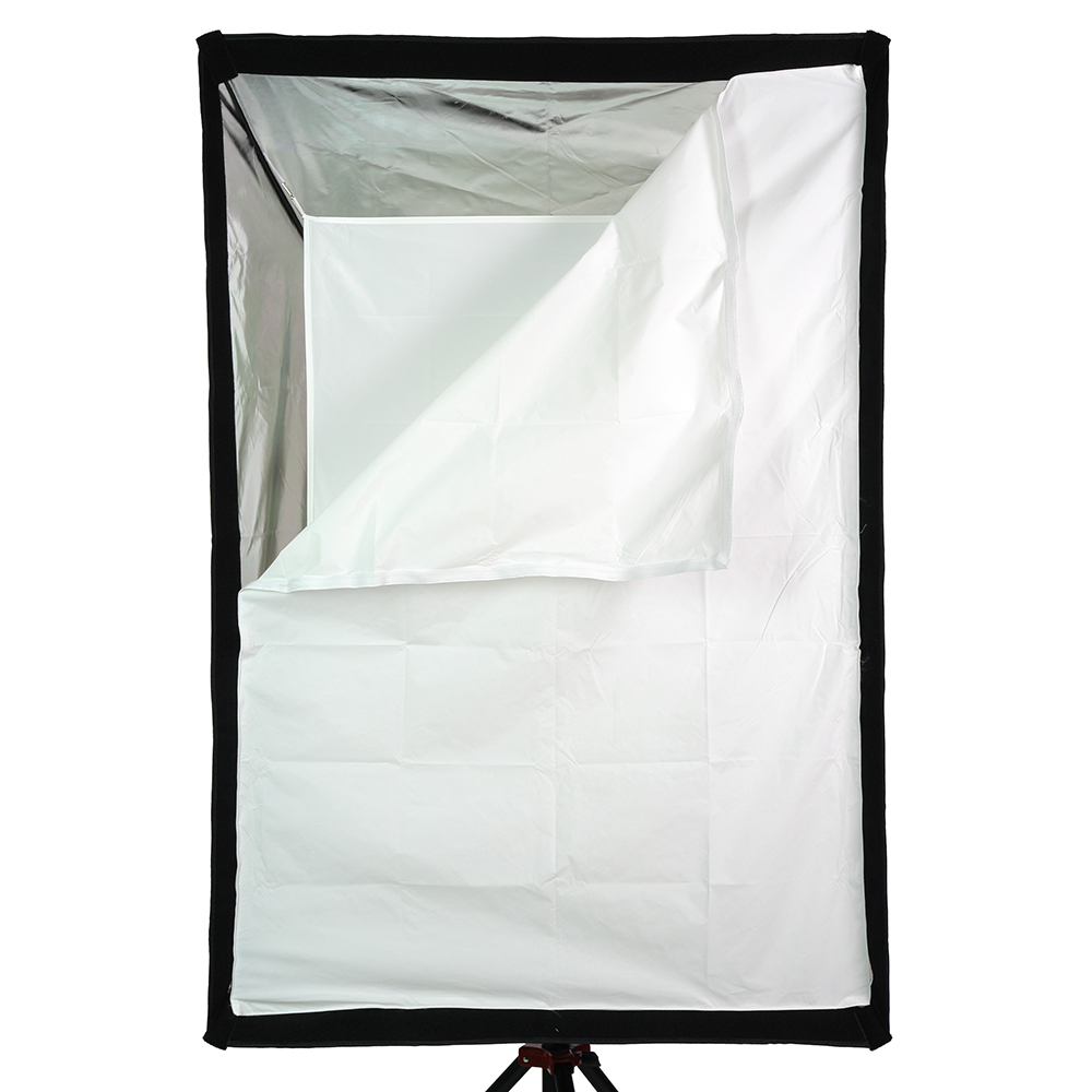 Закрытая конструкция позволяет избежать нежелательных бликов и потерь светового потока. Отражатель, с серебристой тканью внутри, обеспечивает равномерную засветку рассеивателя, который в свою очередь, благодаря большой поверхности, смягчает формируемые тени. Дополнительный внутренний диффузор улучшает равномерность светового потока. Наконечники на упругих металлических спицах не повреждают тканевые спицедержатели софтбокса и облегчают сборку конструкции.