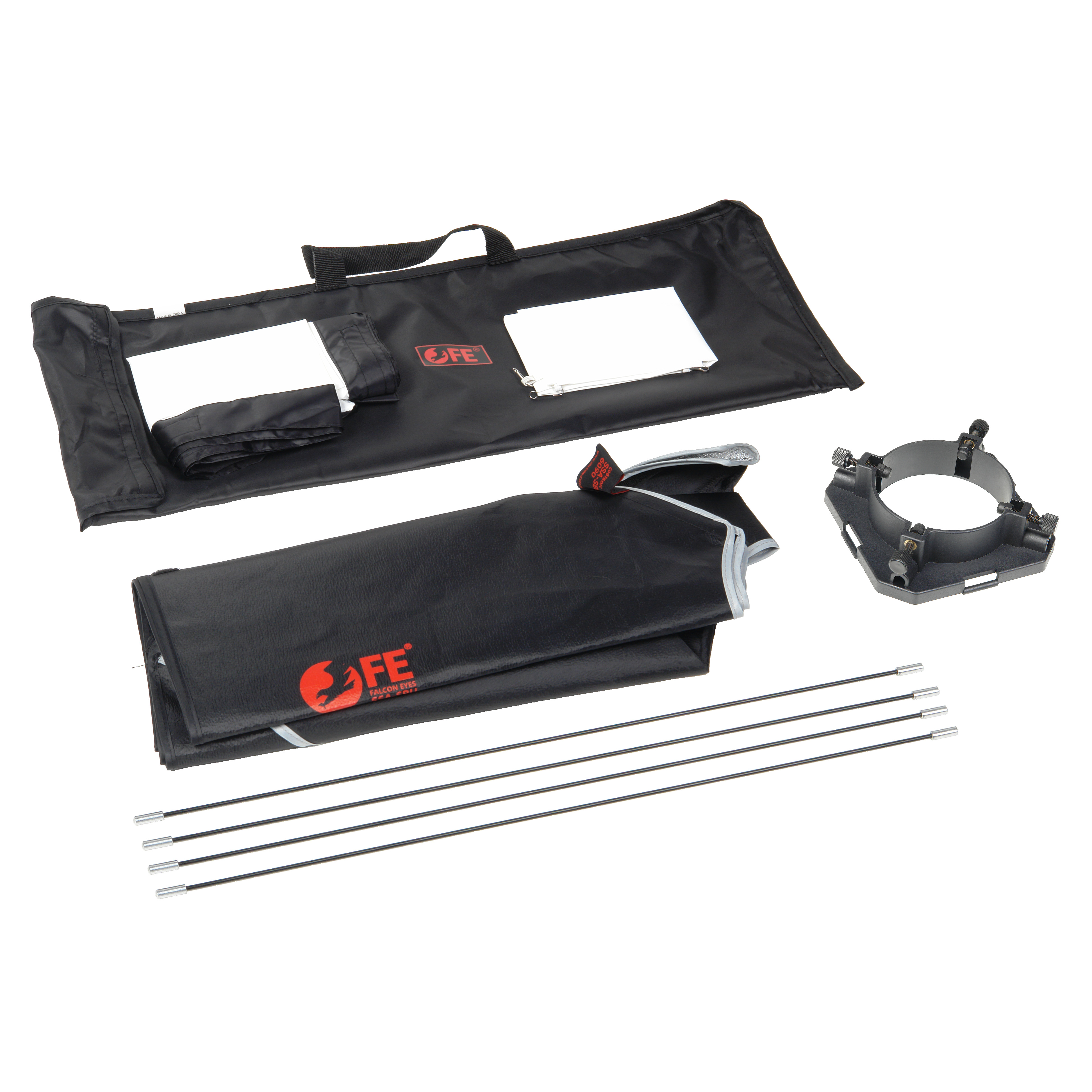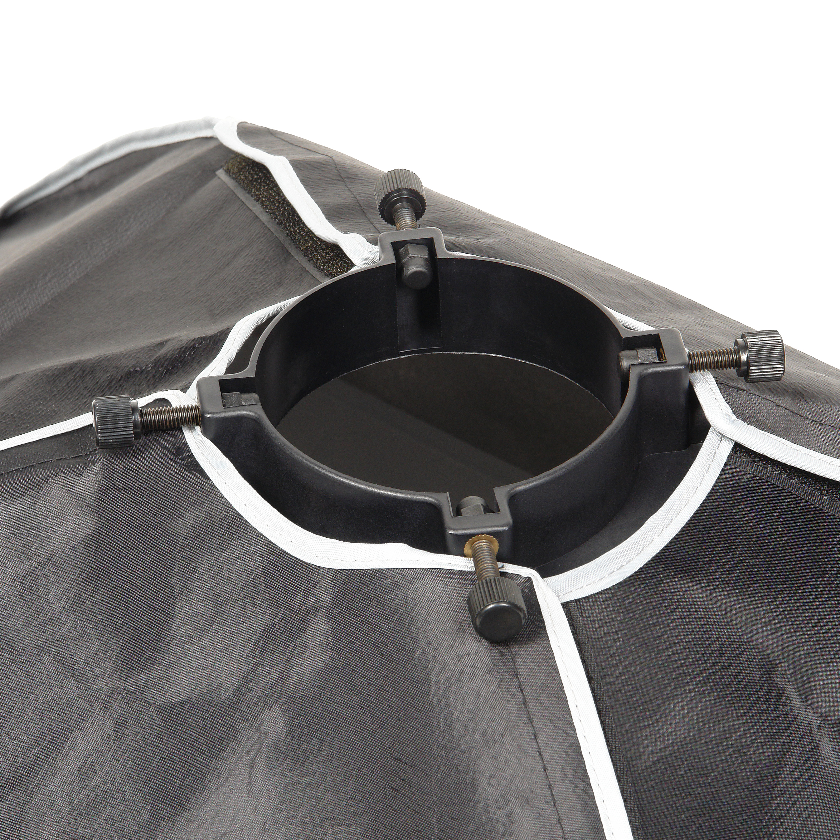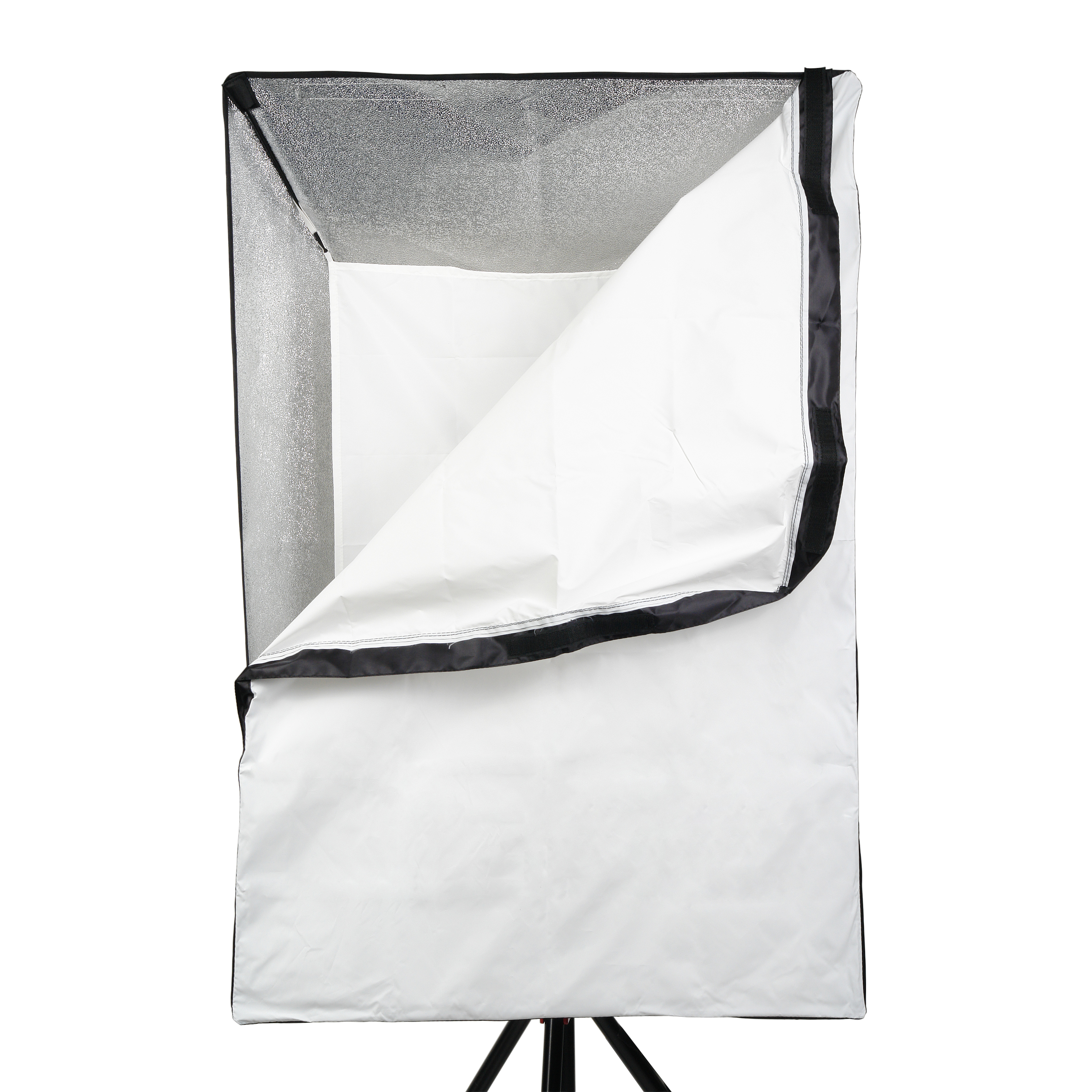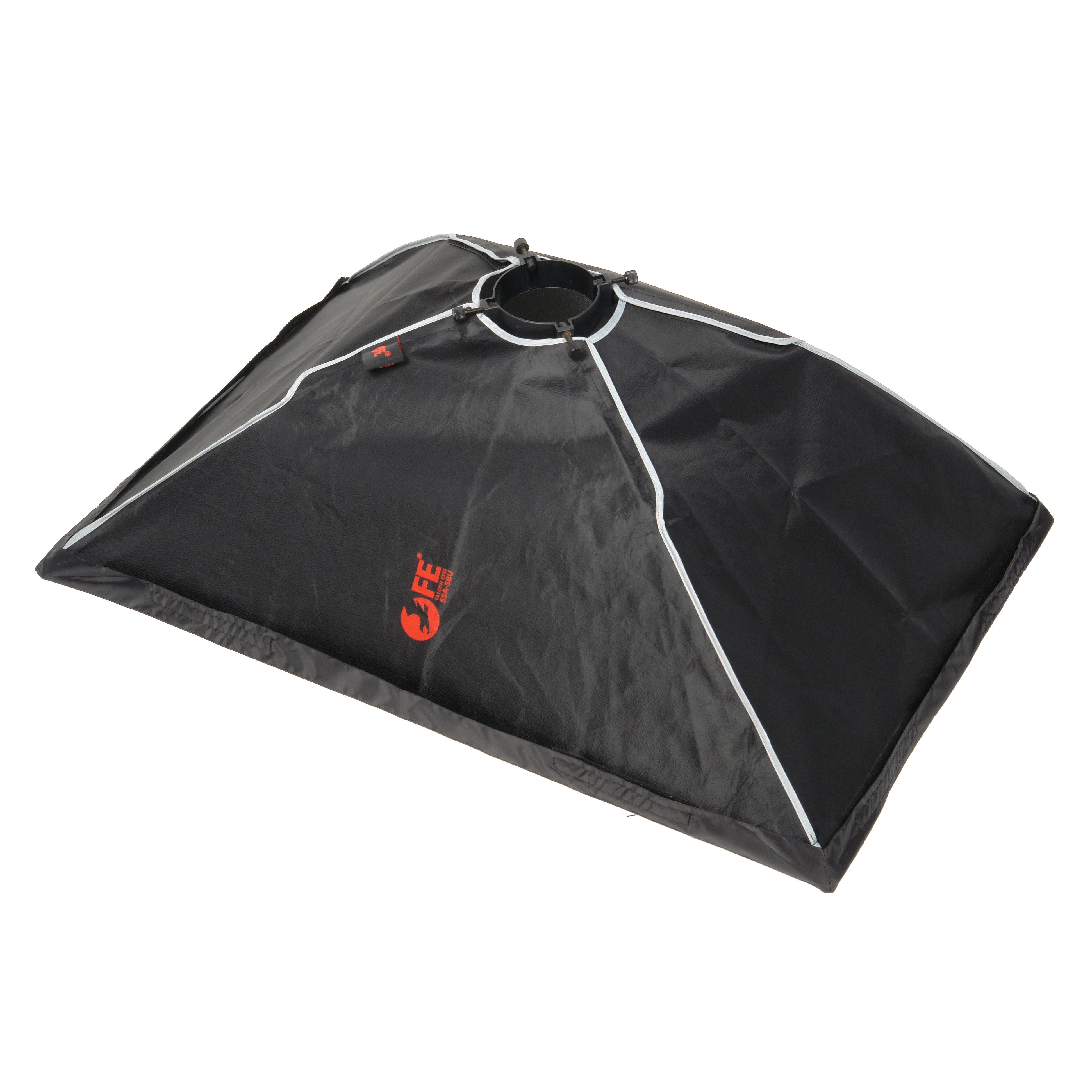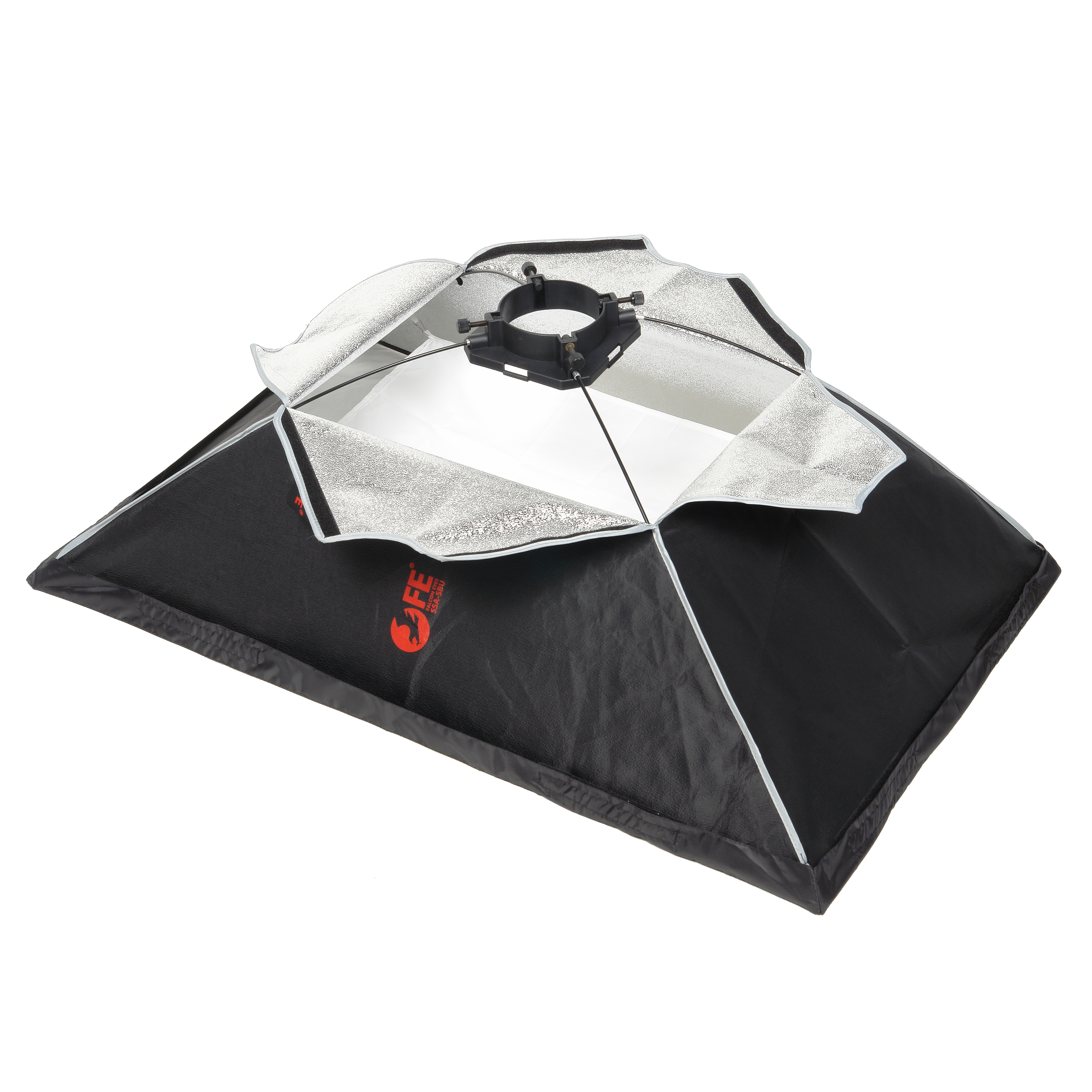 Закрытая конструкция позволяет избежать нежелательных бликов и потерь светового потока. Отражатель, с серебристой тканью внутри, обеспечивает равномерную засветку рассеивателя, который в свою очередь, благодаря большой поверхности, смягчает формируемые тени. Дополнительный внутренний диффузор улучшает равномерность светового потока. Наконечники на упругих металлических спицах не повреждают тканевые спицедержатели софтбокса и облегчают сборку конструкции.