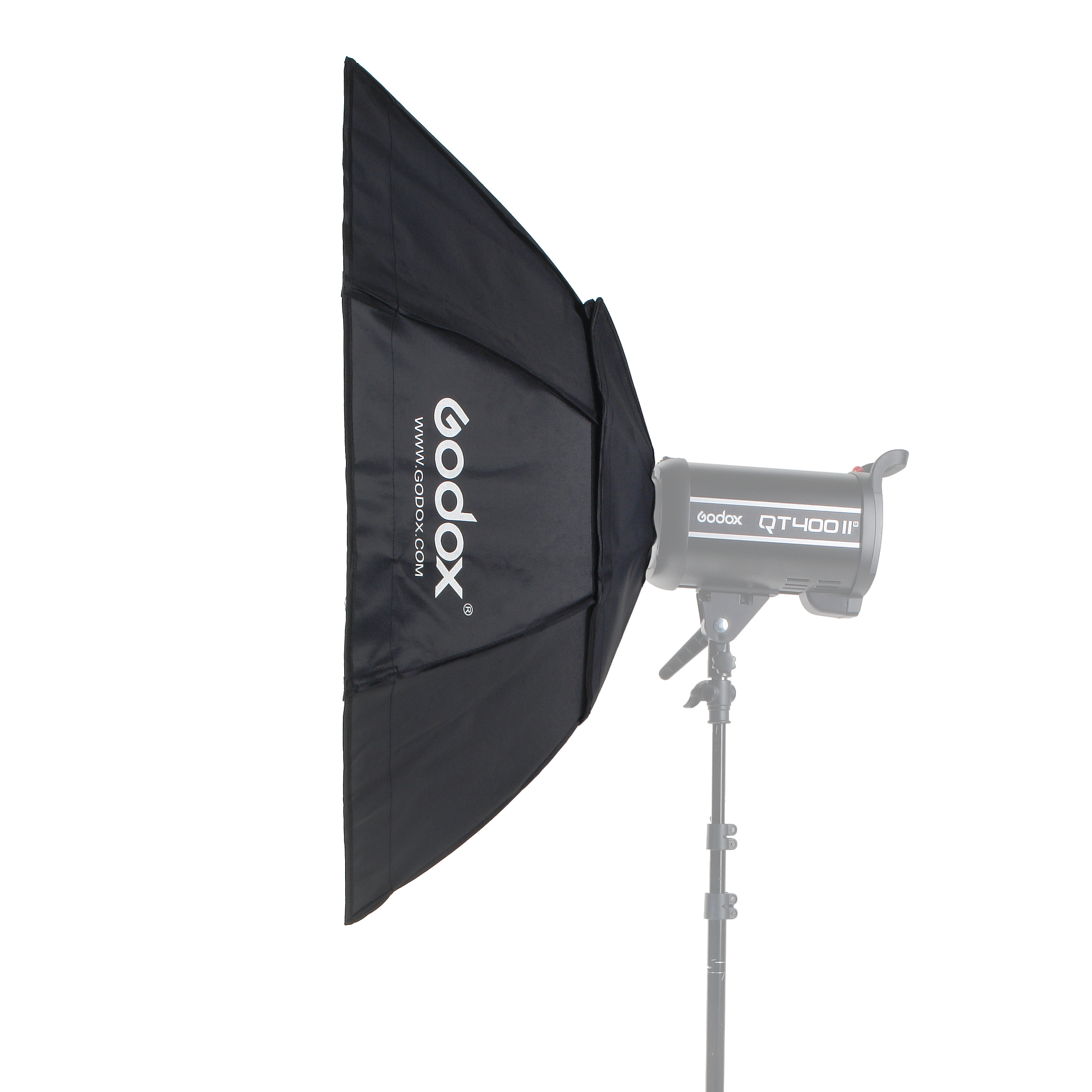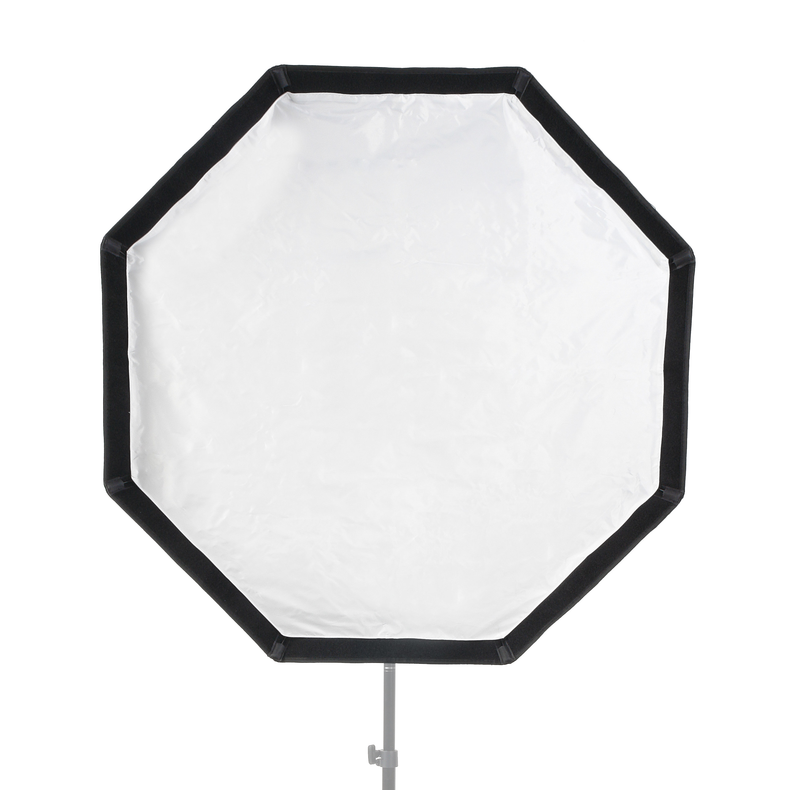 Закрытая конструкция позволяет избежать нежелательных бликов и потерь светового потока. Отражатель, с серебристой тканью внутри, обеспечивает равномерную засветку рассеивателя, который в свою очередь, благодаря большой поверхности, смягчает формируемые тени. Дополнительный внутренний диффузор улучшает равномерность светового потока. Наконечники на упругих металлических спицах не повреждают тканевые спицедержатели софтбокса и облегчают сборку конструкции.