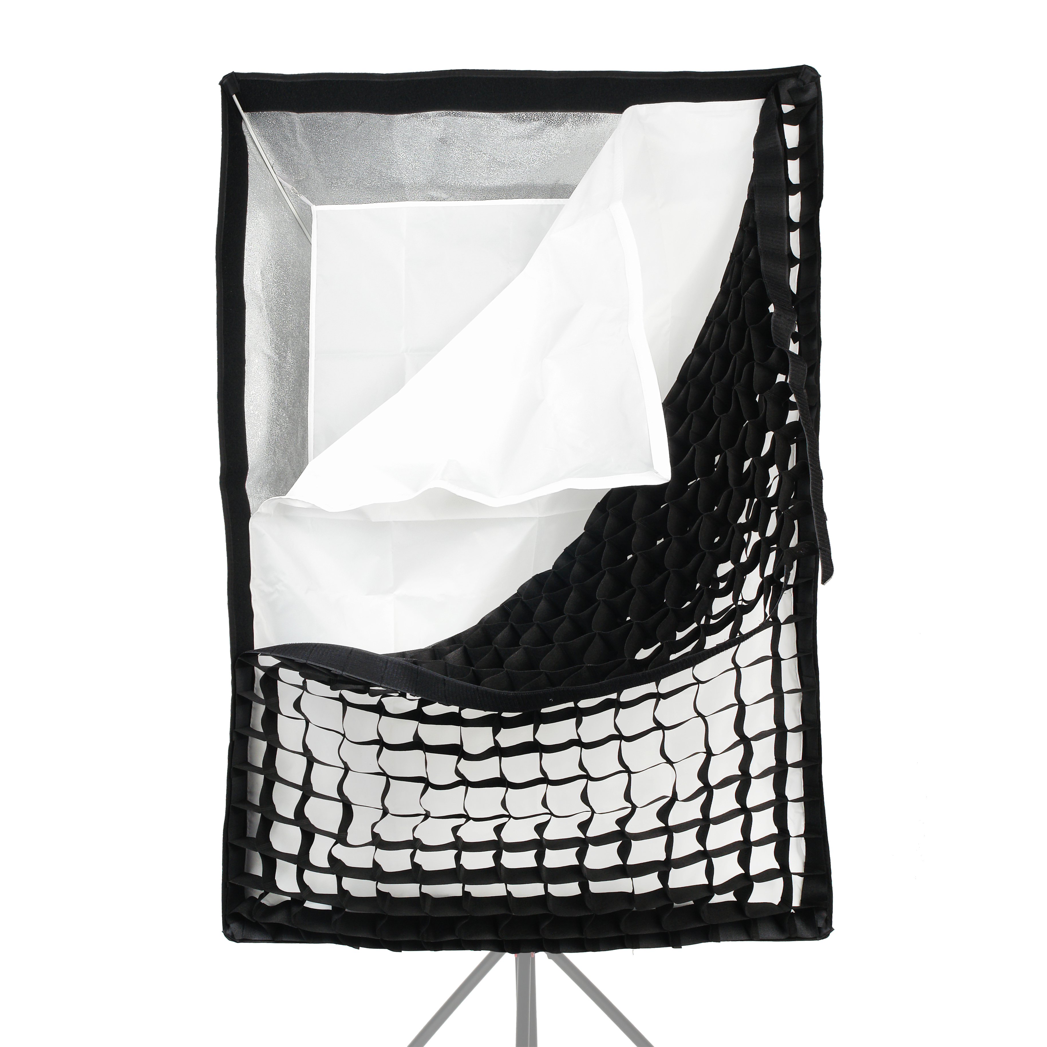 Тканевые соты крепятся на липучку к внутреннему краю софтбокса. Соты ограничивают световой поток и делают его более узким, оставляя только параллельные лучи, что позволяет усилить контраст в снимке.