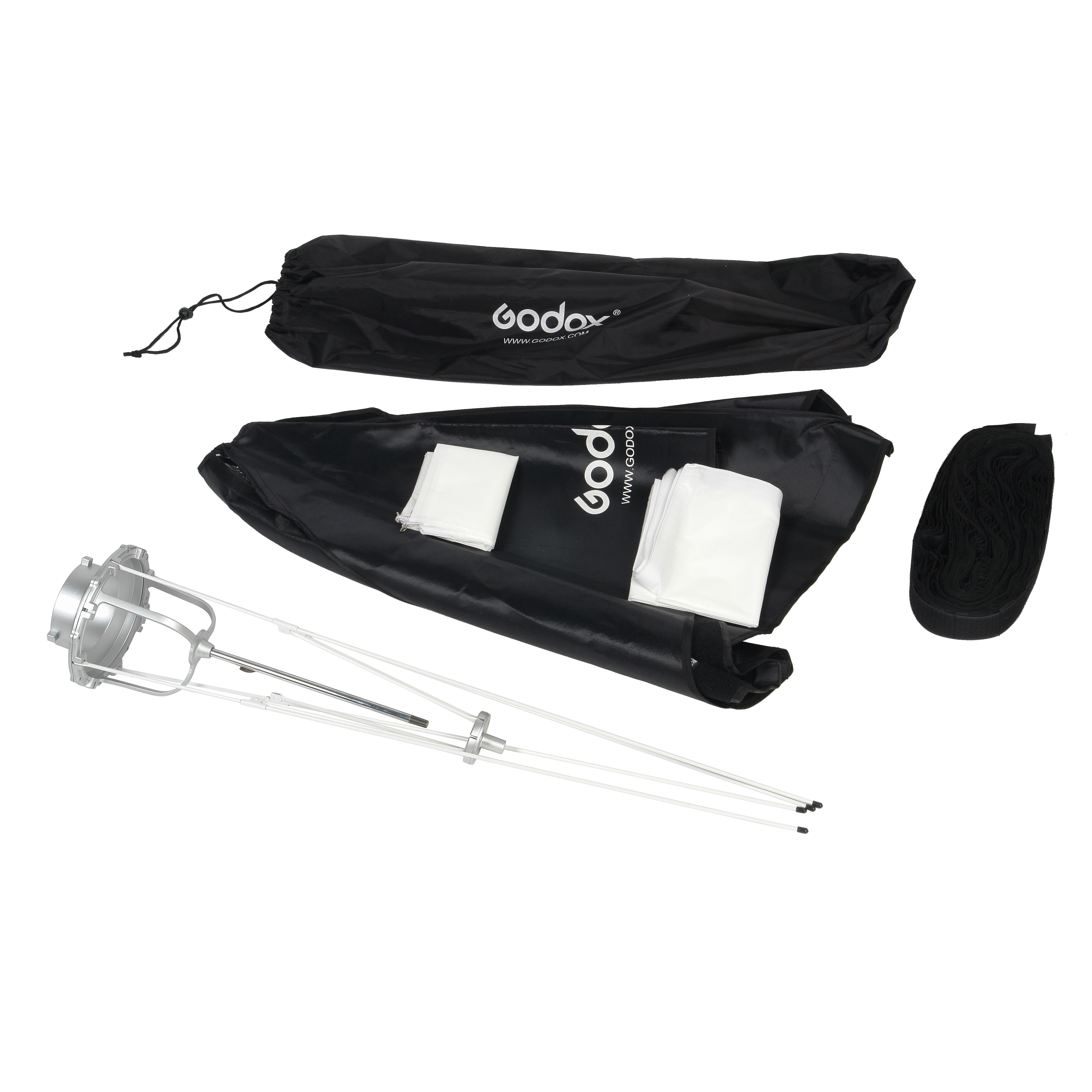 В сложенном виде легкий софтбокс весом всего 1.9 кг упаковывается в чехол компактного размера 85x19x19 см. Комплект удобен для хранения и транспортировки.