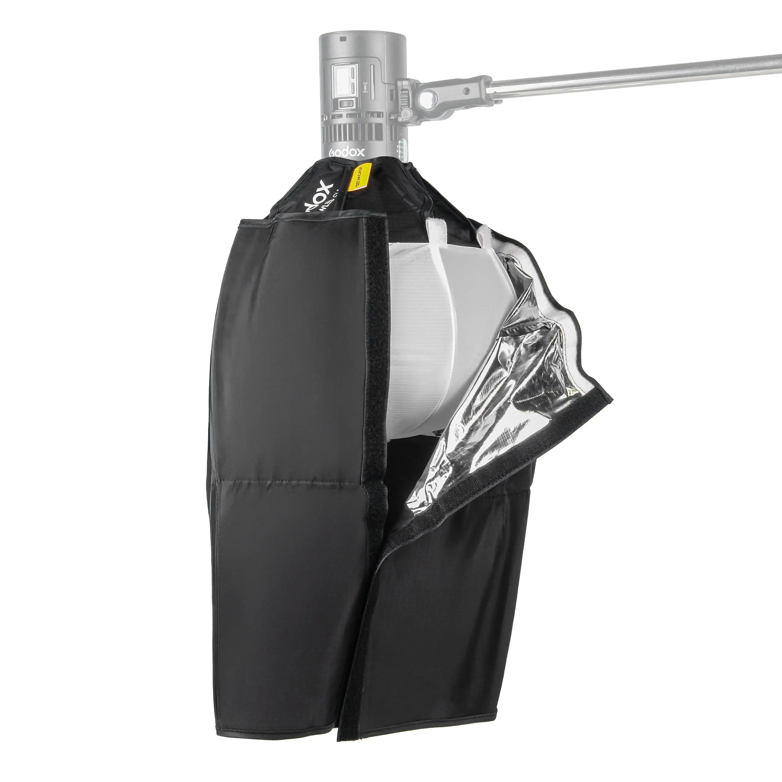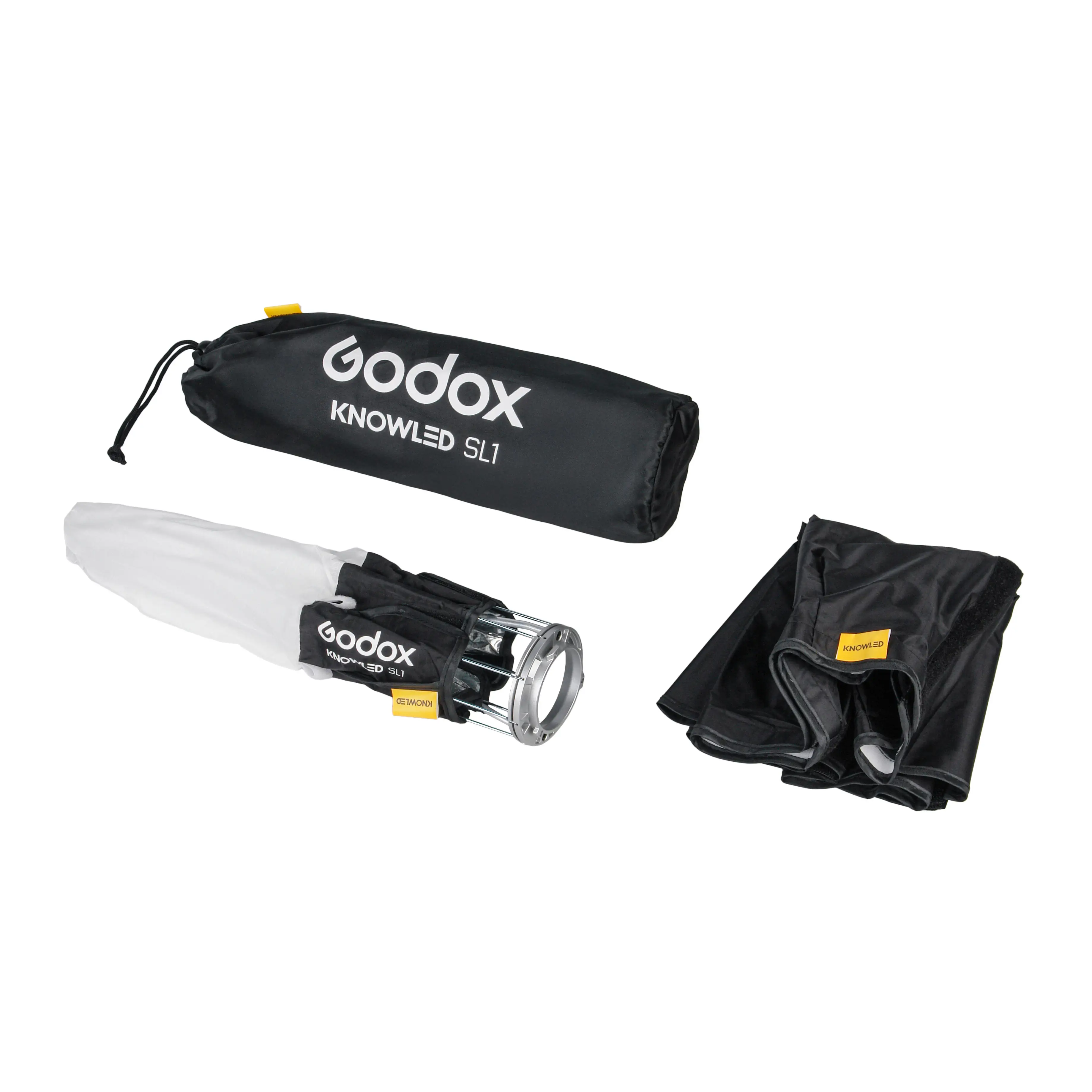Фирменный байонет Godox Mini позволяет легко и быстро установить SL1 на светодиодные осветители MS60R, MS60Bi, RS60R и RS60Bi, что делает софтбокс универсальным и практичным инструментом для управления освещением на съемочной площадке.