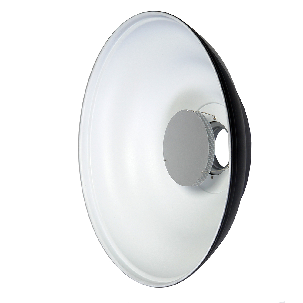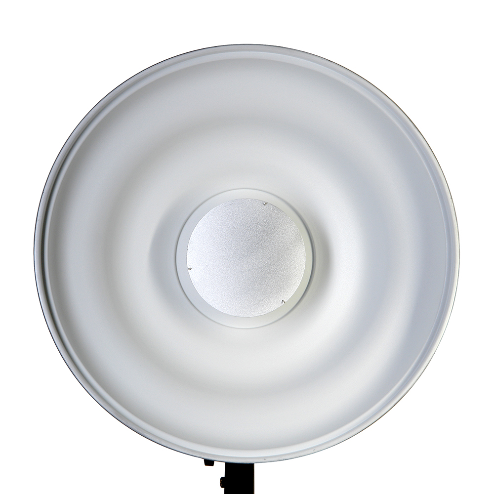 Новая форма тарелки захватывает свет и фокусирует его с максимальной эффективностью. Независимо от того в каком направлении световые лучи покинули осветитель, в тарелке новой формы они все равномерно перенаправятся на объект съемки. Белая отражающая поверхность формирует мягкий рассеянный световой поток, такой эффект может потребоваться в портретной съемке.