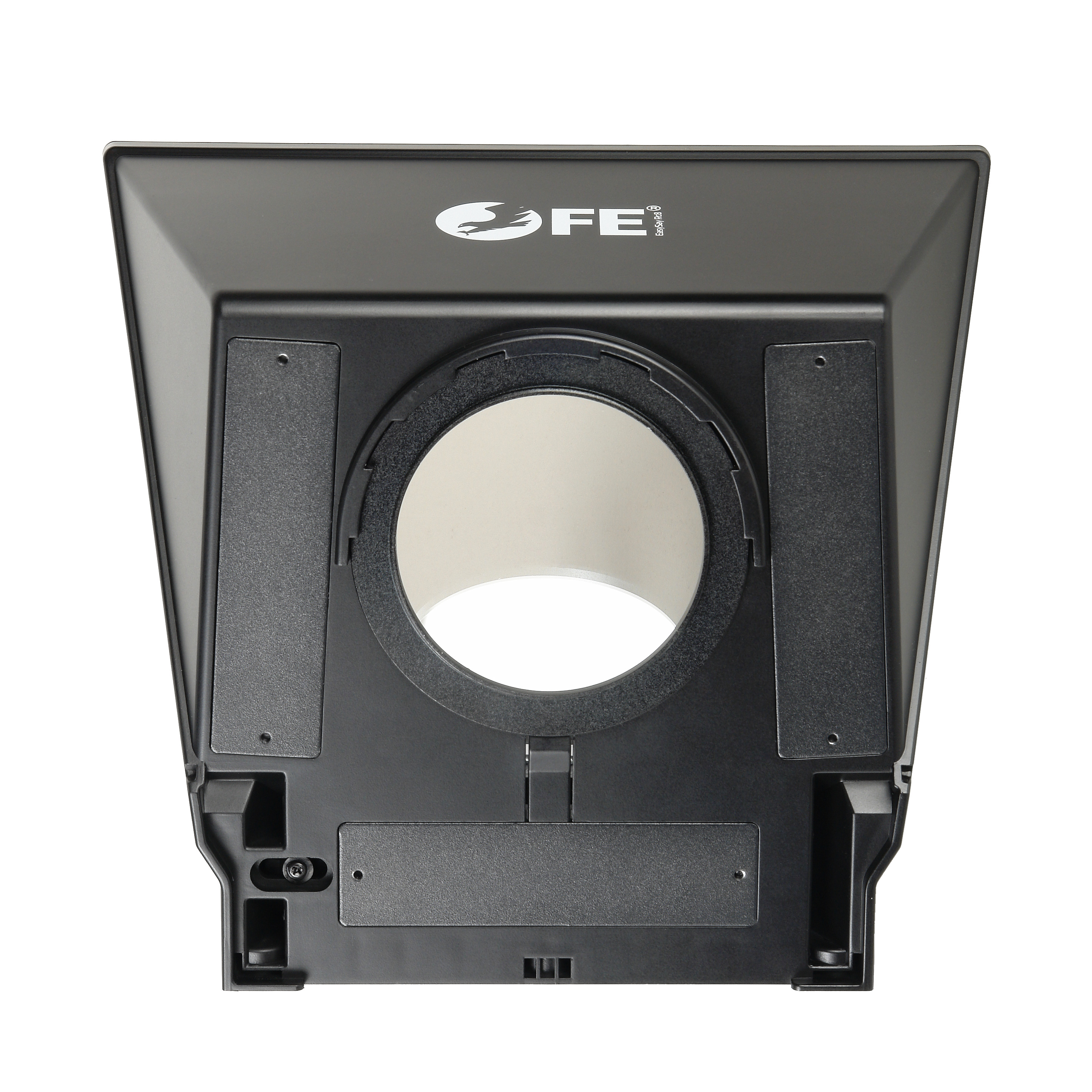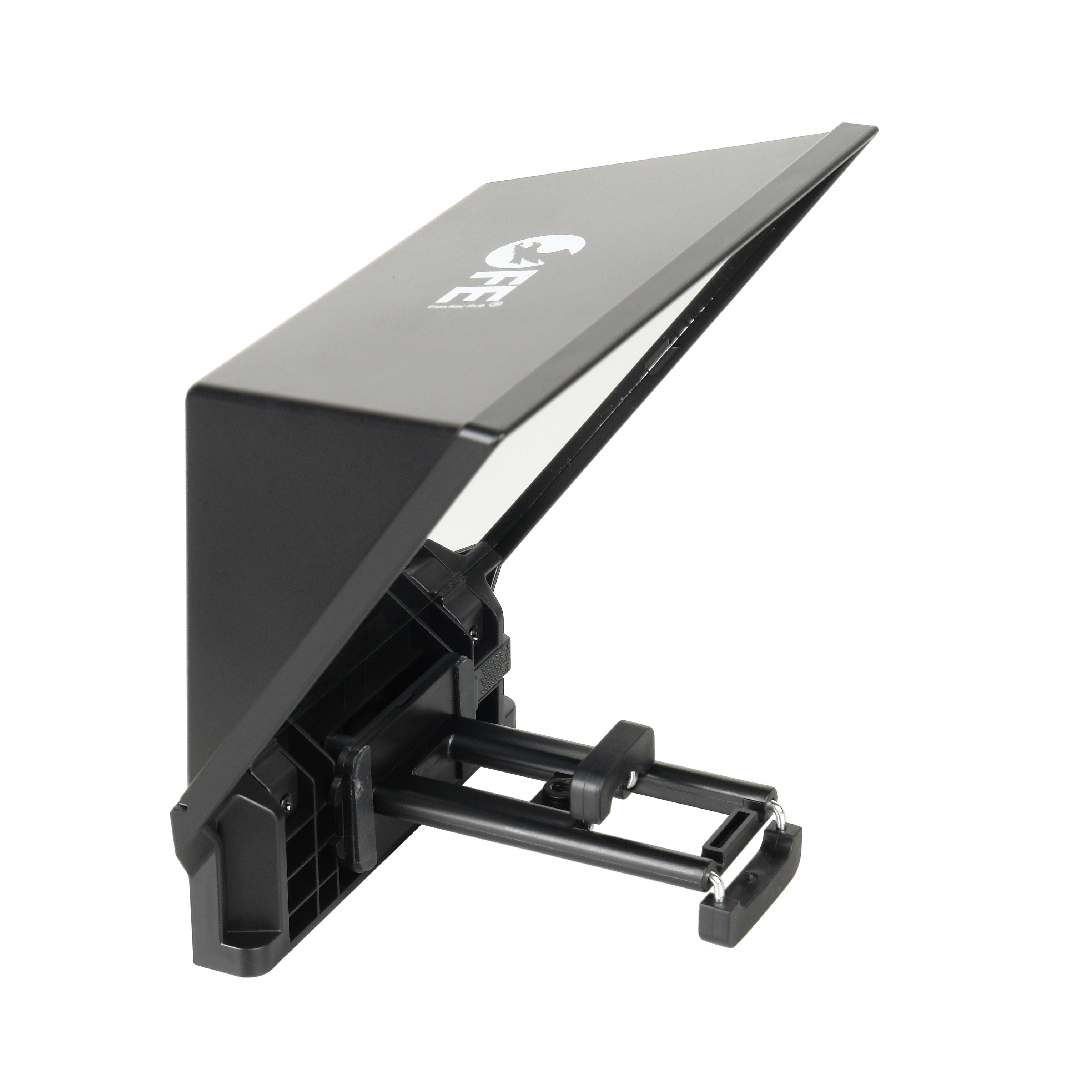 Стекло суфлера трапецеидальной формы 10'' со светопроницаемость 70/30 позволяет снимать материал без искажений – в камеру попадает достаточно света. Текст, спроецированный на экран телесуфлера, четкий и контрастный и при этом не влияет на качество видеоматериала. Расстояние комфортного считывания — до 3 метров.