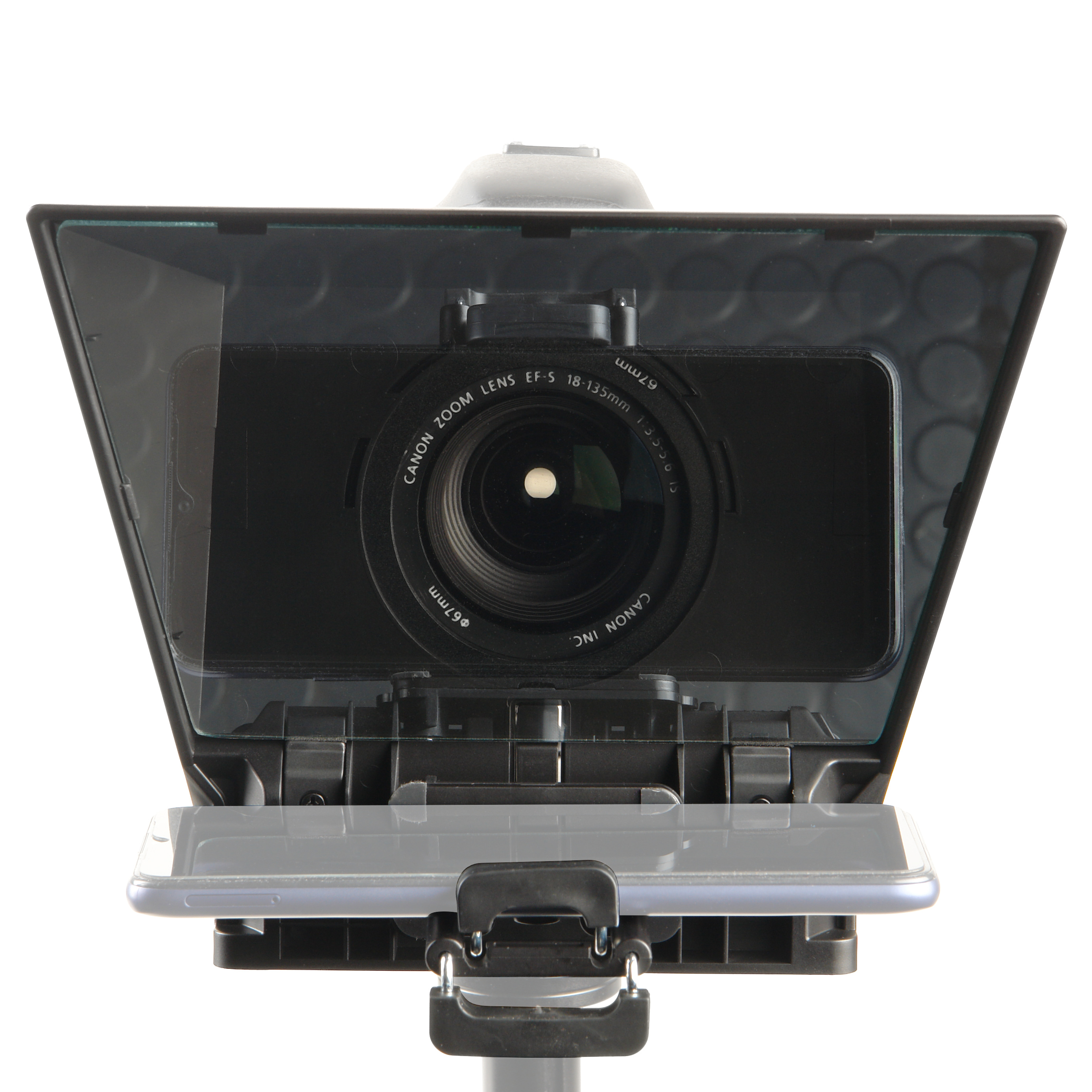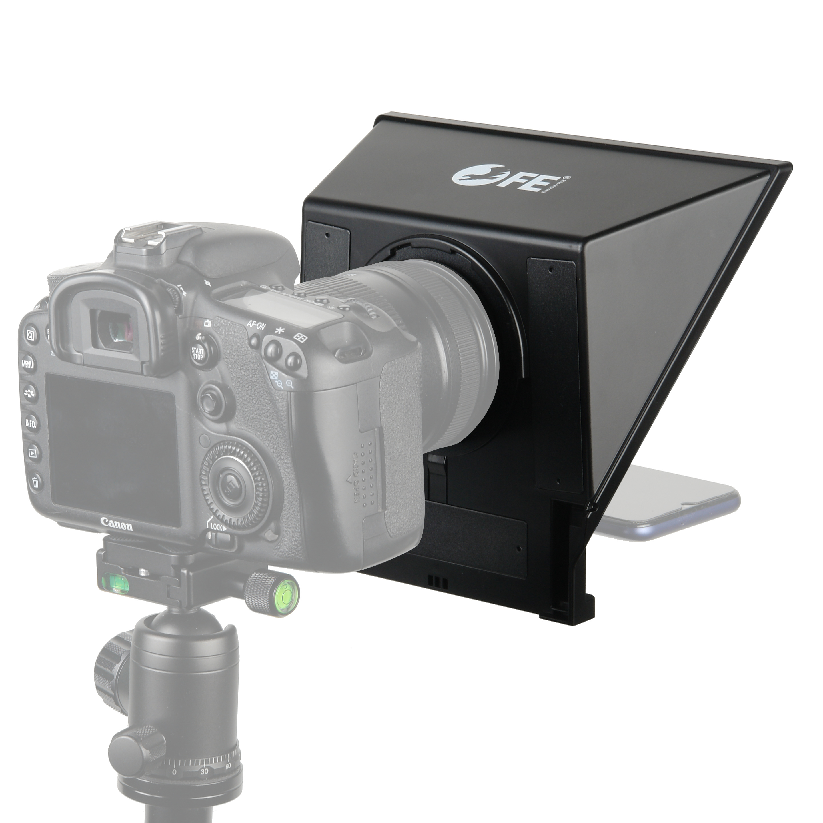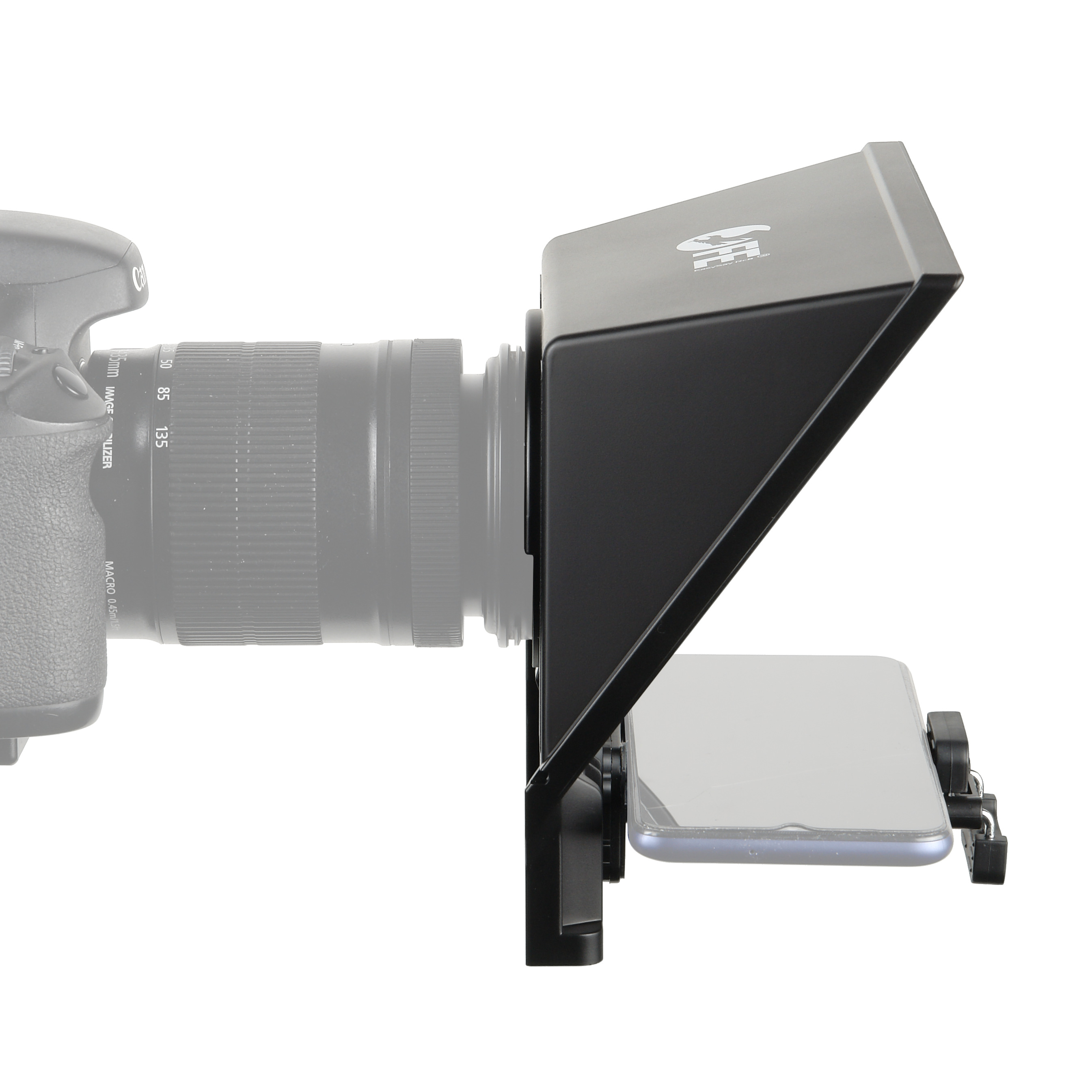 Для съемки цифровой DSLR камерой телесуфлер устанавливается на ее объектив с помощью одного из переходных колец (Ø49, 52, 55, 58, 62, 67, 72, 77 мм мм в комплекте). Переходное кольцо накручивается на резьбу объектива и легко закрепляется на корпусе телесуфлера.