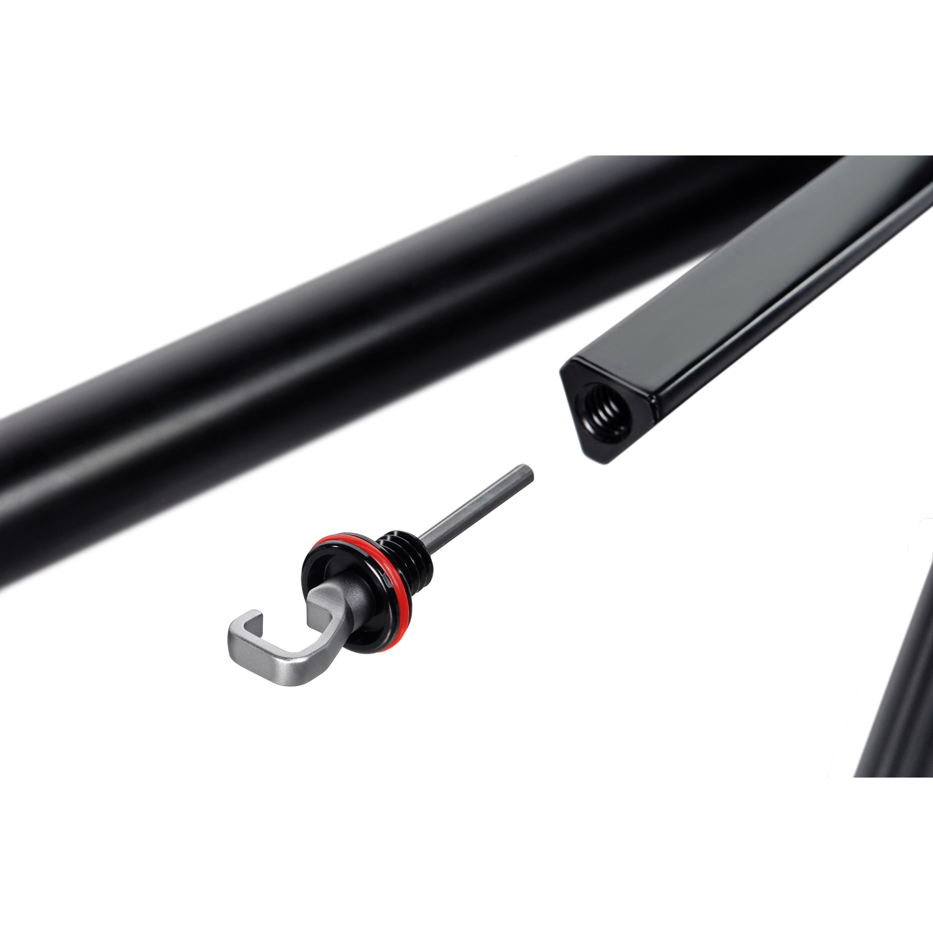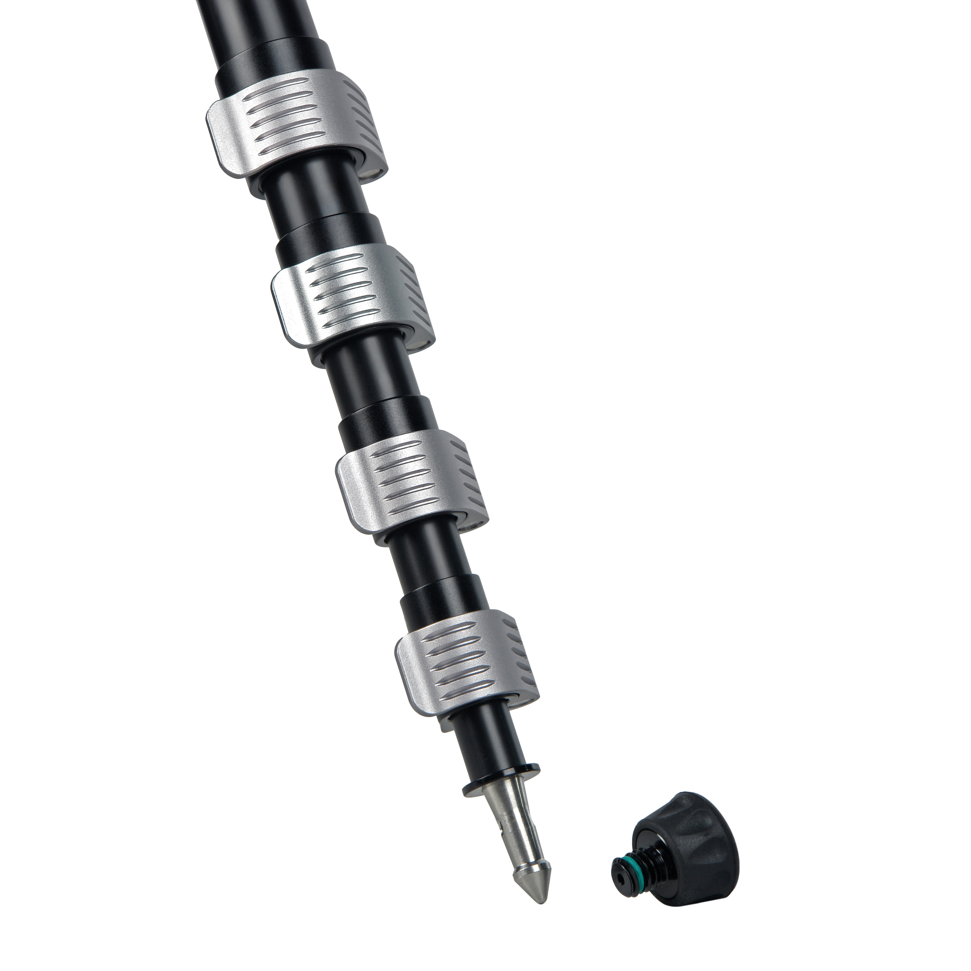 Съемная телескопическая рукоятка длиной 22-30 см может быть установлена с разных сторон головки, чтобы штативом было удобно пользоваться как правой, так и левой рукой.