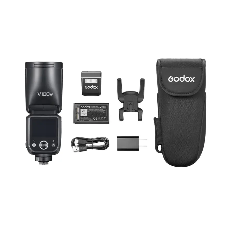 Godox V100N – накамерная вспышка с TTL-режимом управления, сенсорным экраном и питанием от литий-ионного аккумулятора с разъемом USB-C. Она задает новый стандарт для профессионалов, впервые предоставляя мощность 100 Дж в компактном накамерном исполнении.