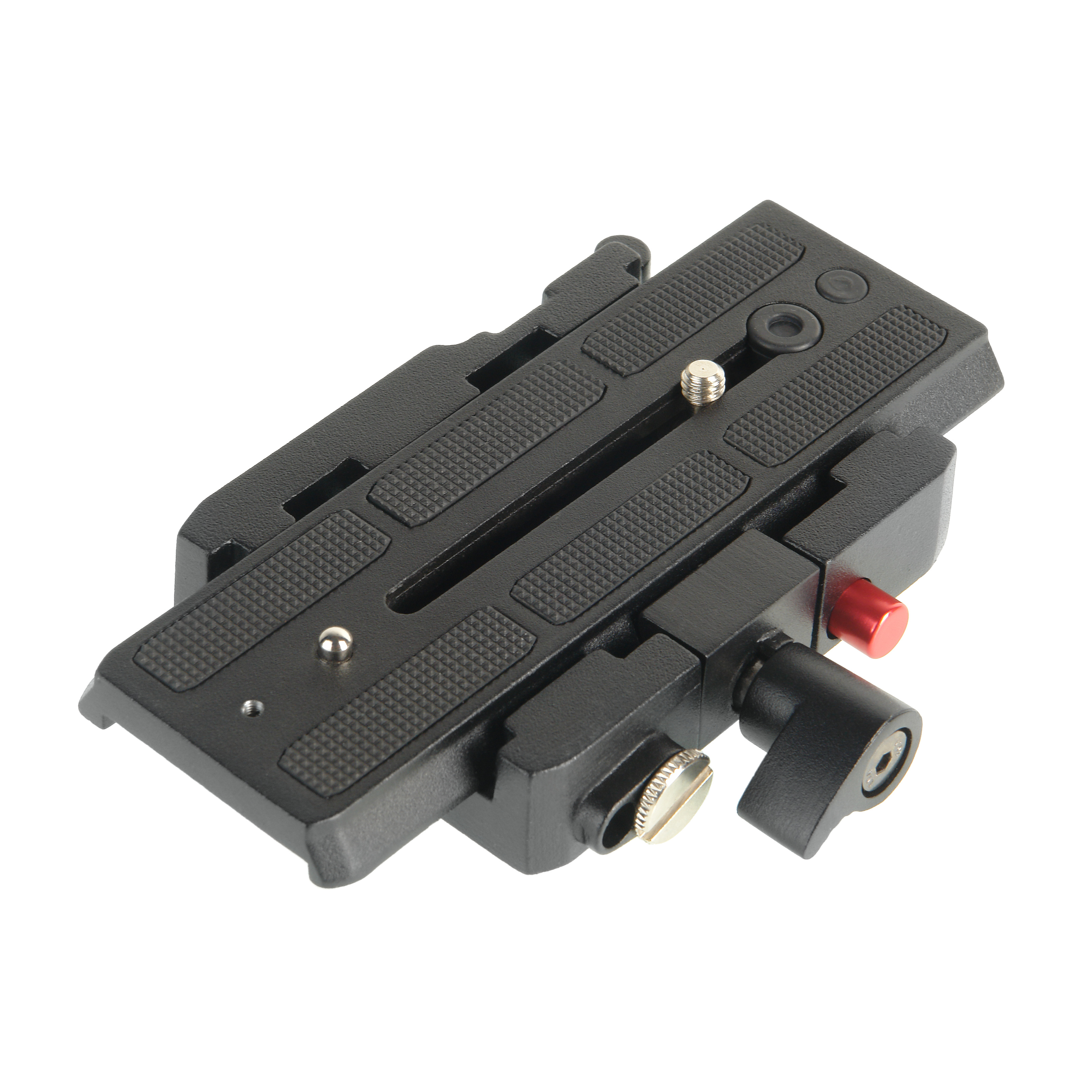 Быстросъемная штативная площадка имеет противоскользящие резиновые накладки и фиксирующий стопор, препятствующий случайному выскальзыванию камеры во время установки или снятия с площадки.